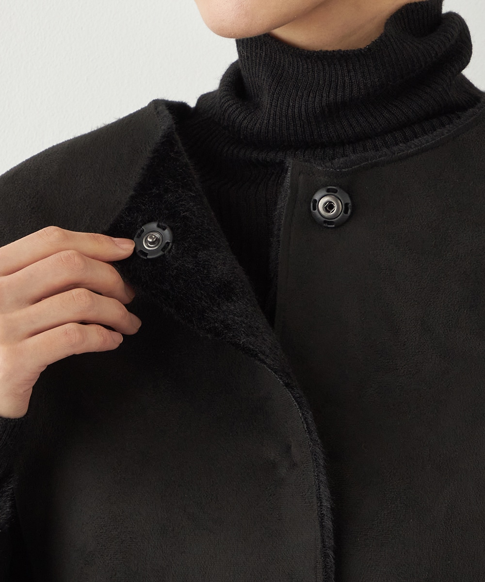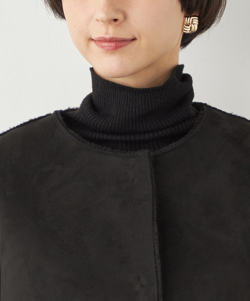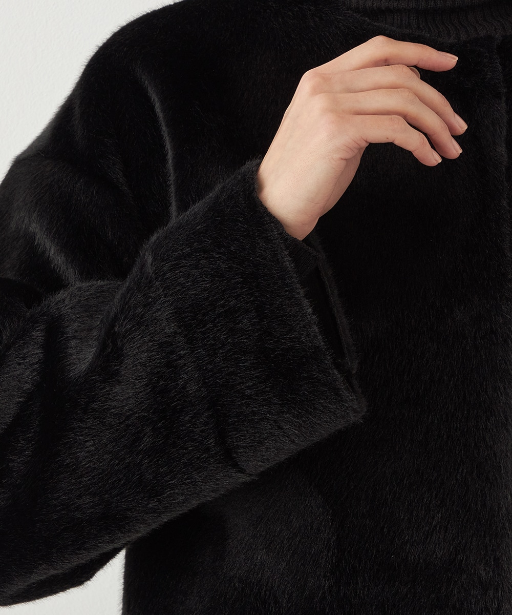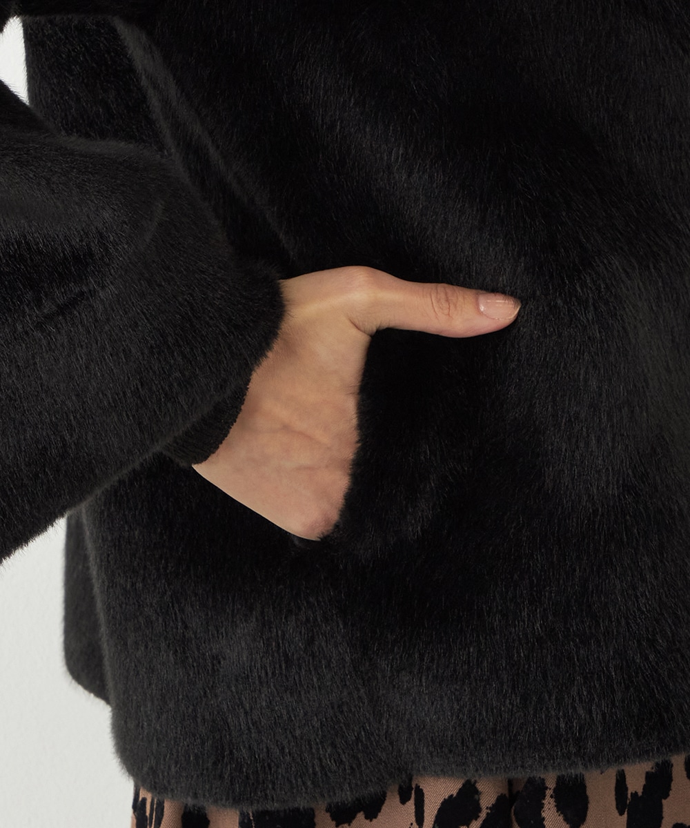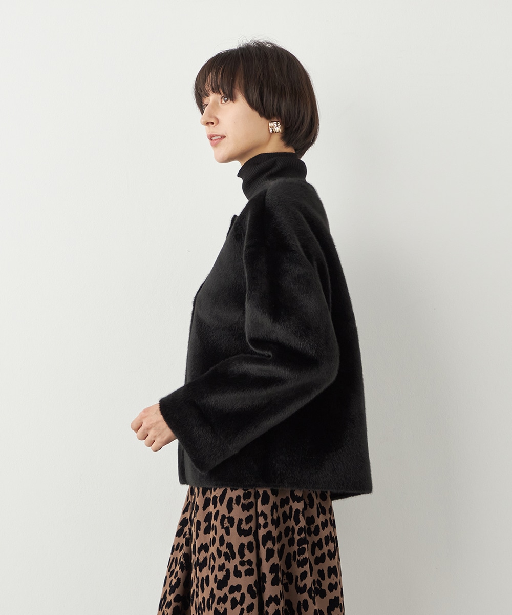 ぬくもり感が魅力のフェイクムートン。カーディガン感覚で着られて便利なショートブルゾン。