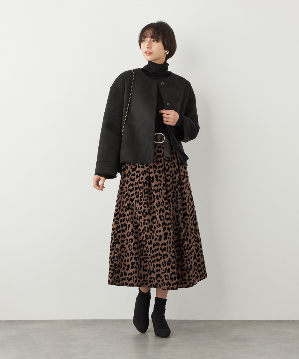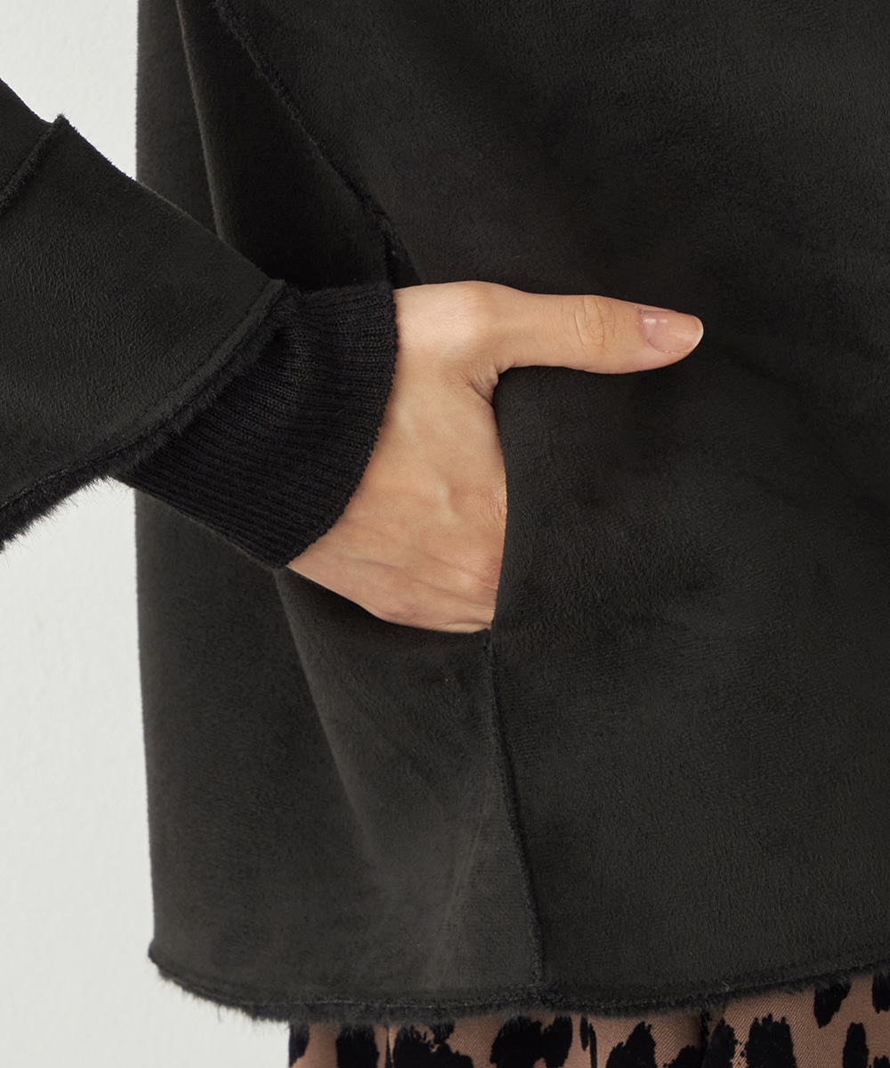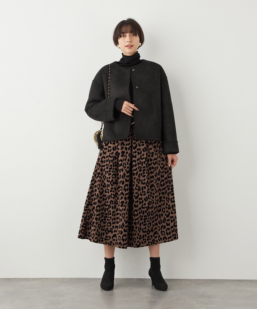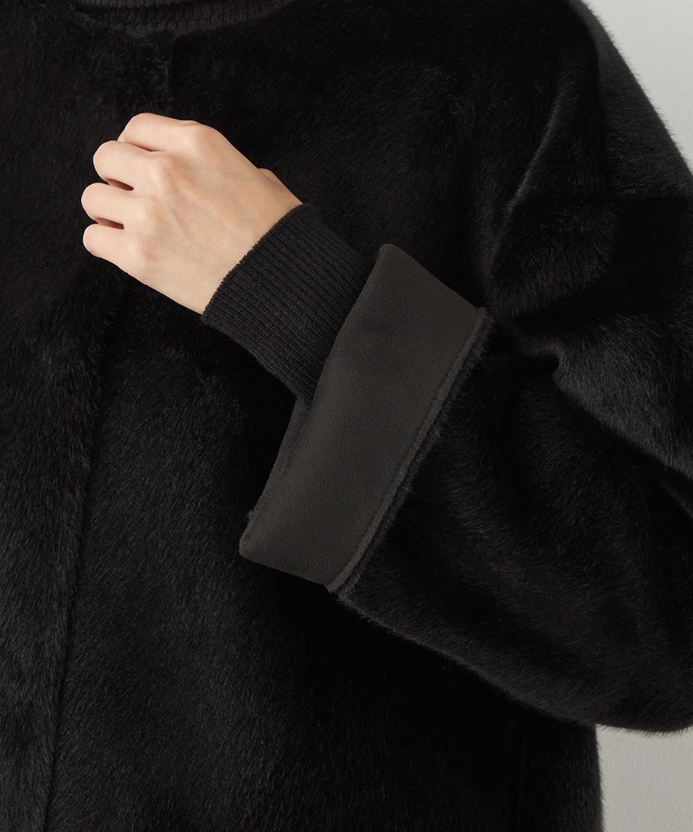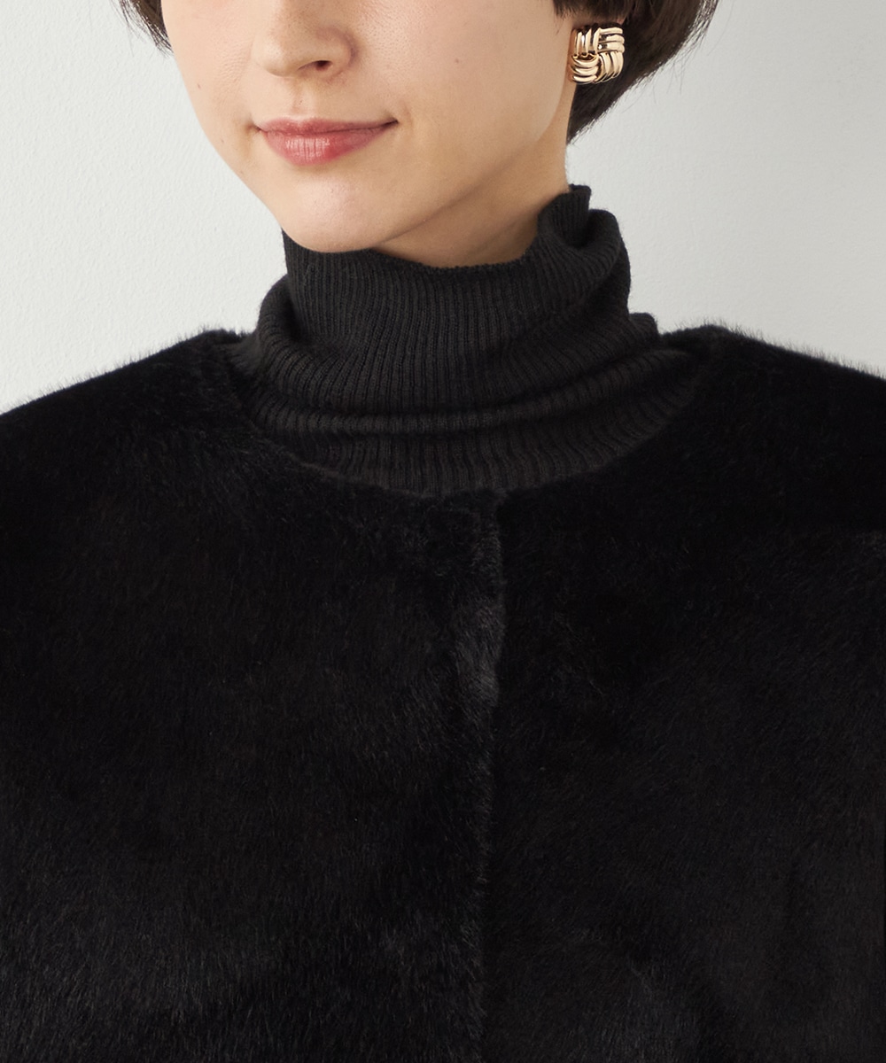 ぬくもり感が魅力のフェイクムートン。カーディガン感覚で着られて便利なショートブルゾン。