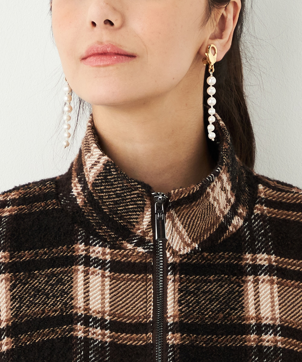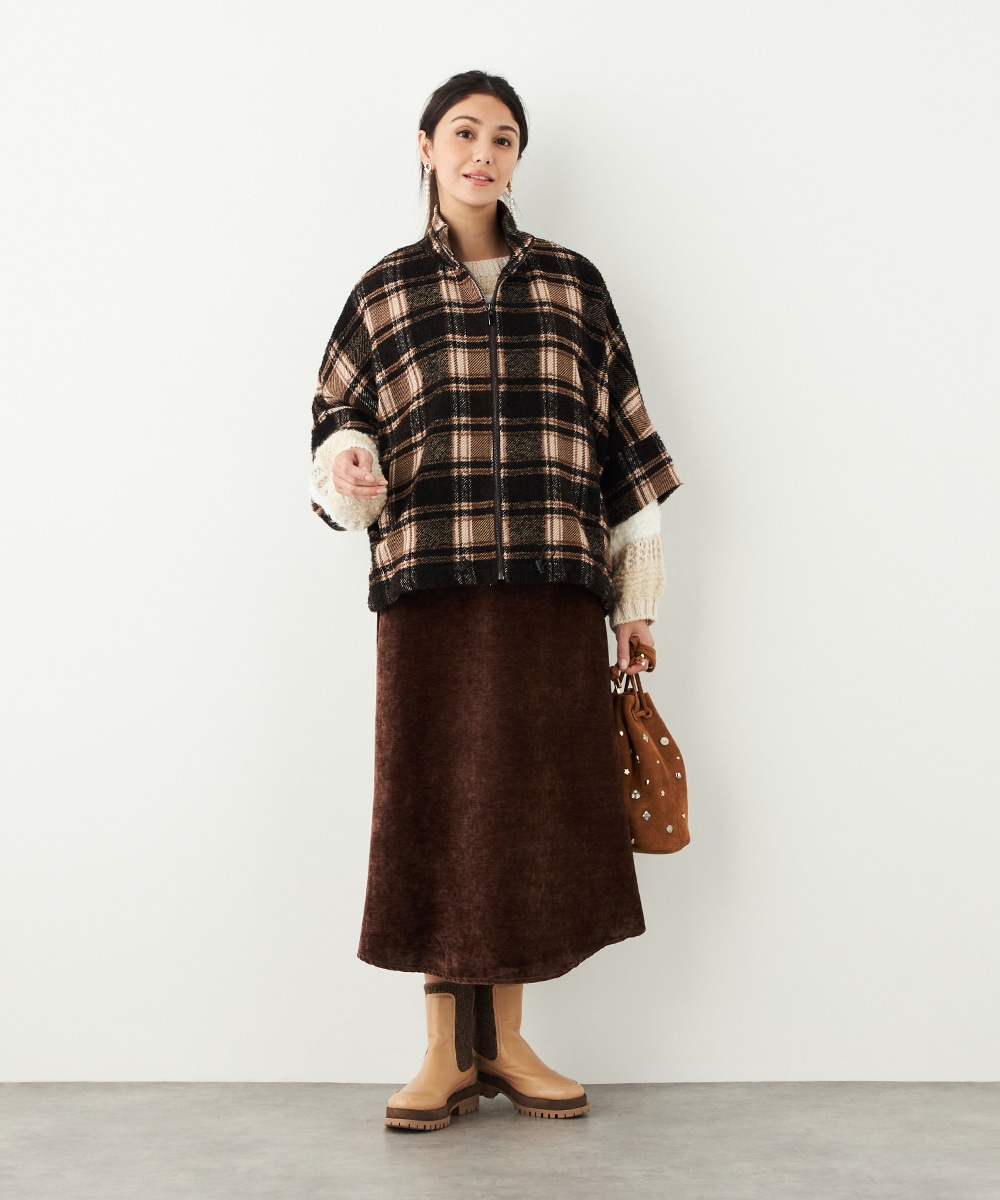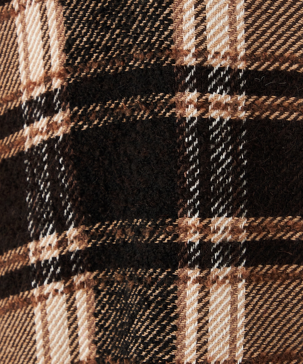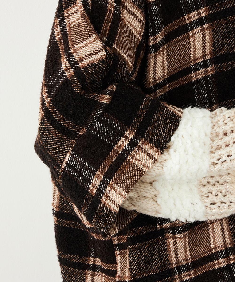 トラディショナルに着こなせるチェック柄を、トレンドの配色でデザインしました。ゆる感のあるシルエットとショート丈のバランスにもこだわっています。七分袖ならではの軽やかな印象も魅力です。裾はストッパー付きのコードがあしらわれ、フィット感を自在に調整できます。