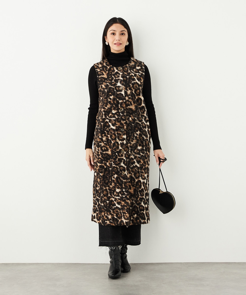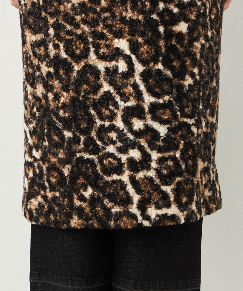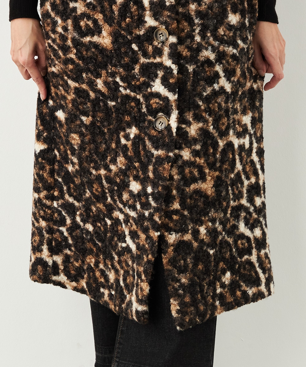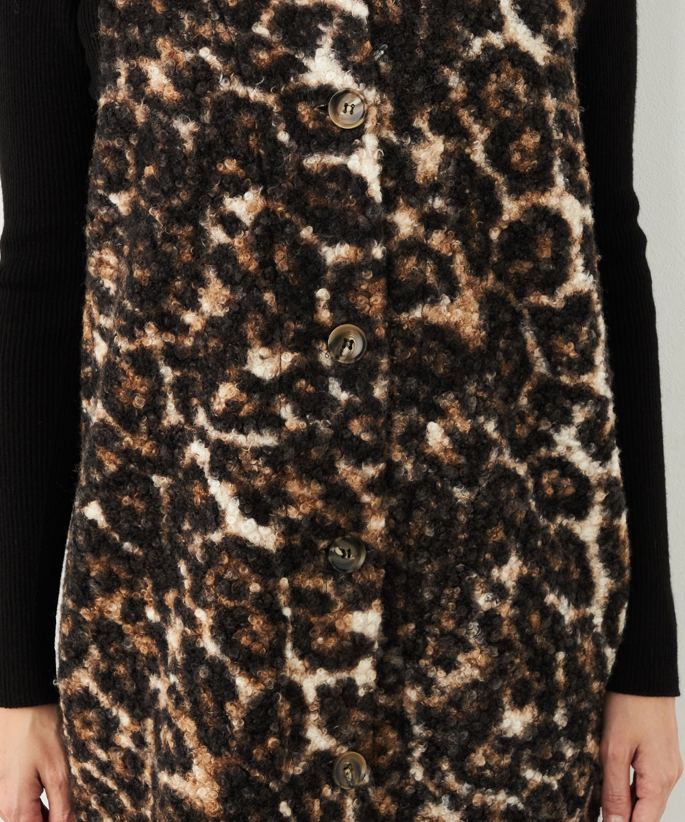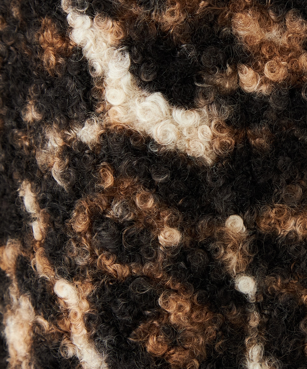 インパクト十分の柄とロング丈のボリュームがコーディネートの主役にぴったりです。裏地は省き、ソフトな風合いを生かしています。表情には暖かみも感じられて、秋冬シーズンらしさの演出にもおすすめのアイテム。フロントボタンを留めてジャンパースカート風に着こなしても素敵です。