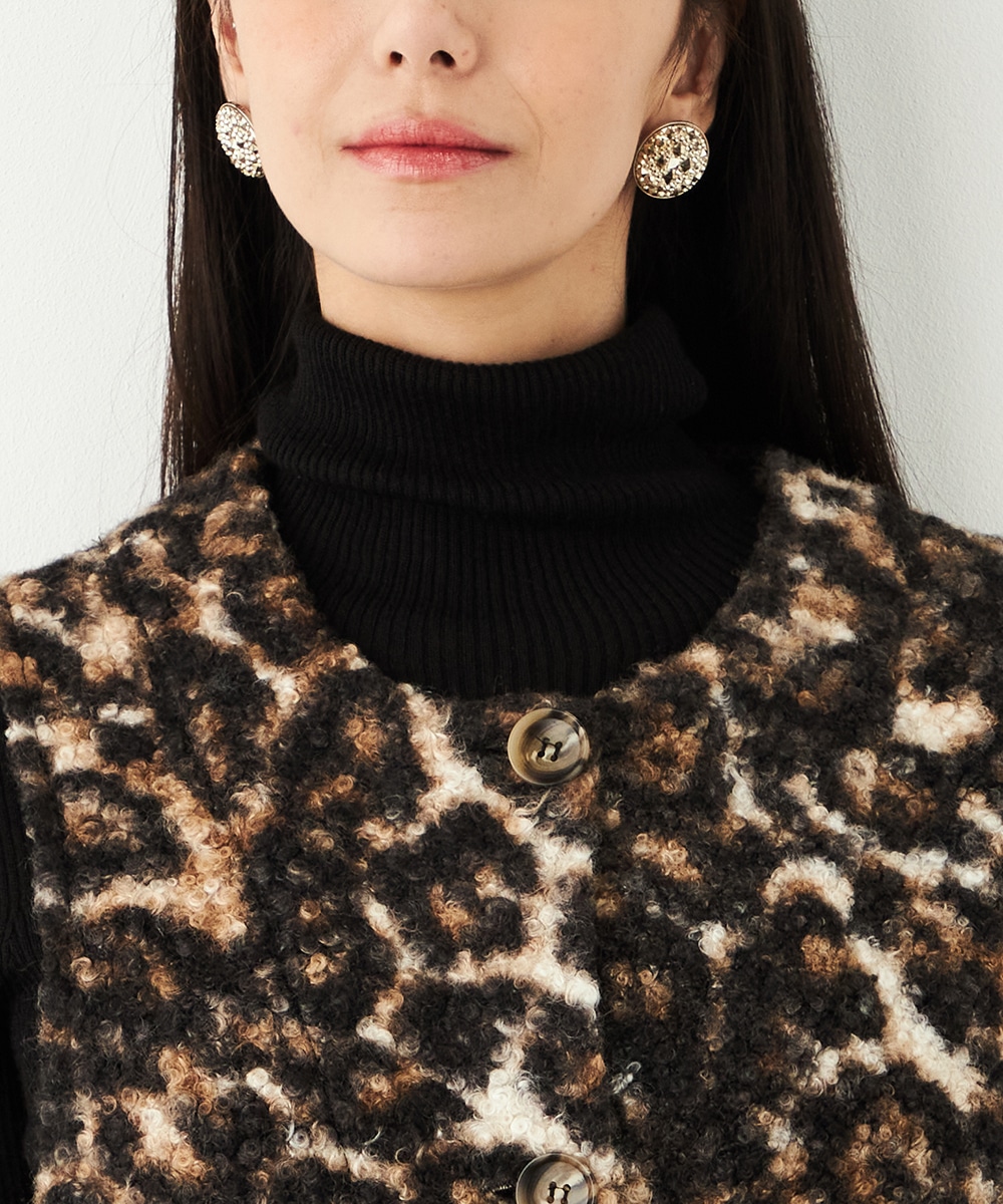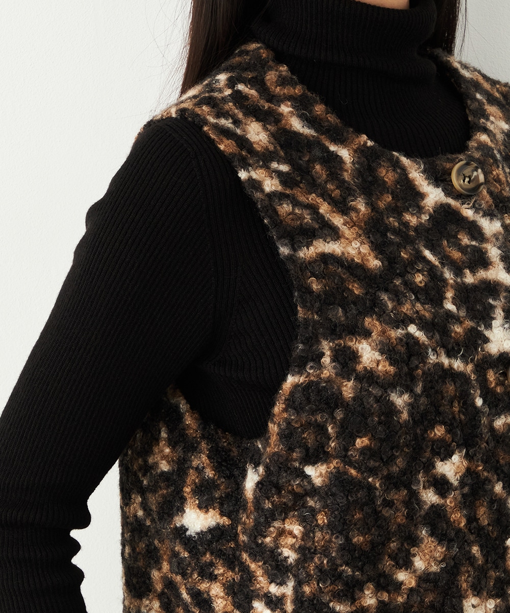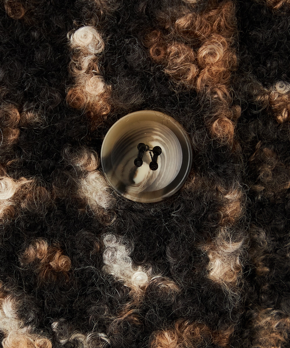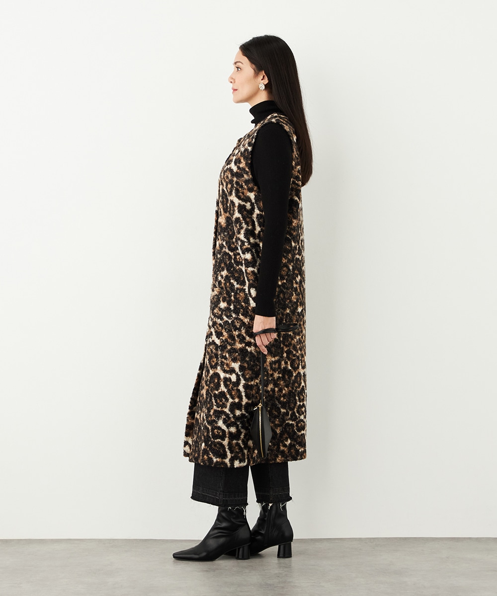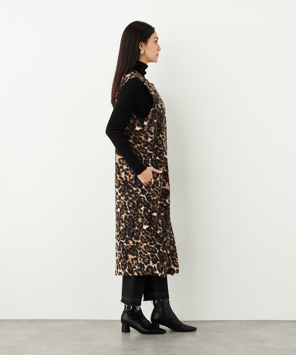 インパクト十分の柄とロング丈のボリュームがコーディネートの主役にぴったりです。裏地は省き、ソフトな風合いを生かしています。表情には暖かみも感じられて、秋冬シーズンらしさの演出にもおすすめのアイテム。フロントボタンを留めてジャンパースカート風に着こなしても素敵です。