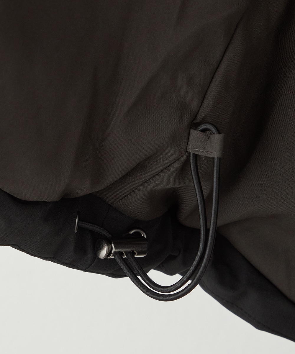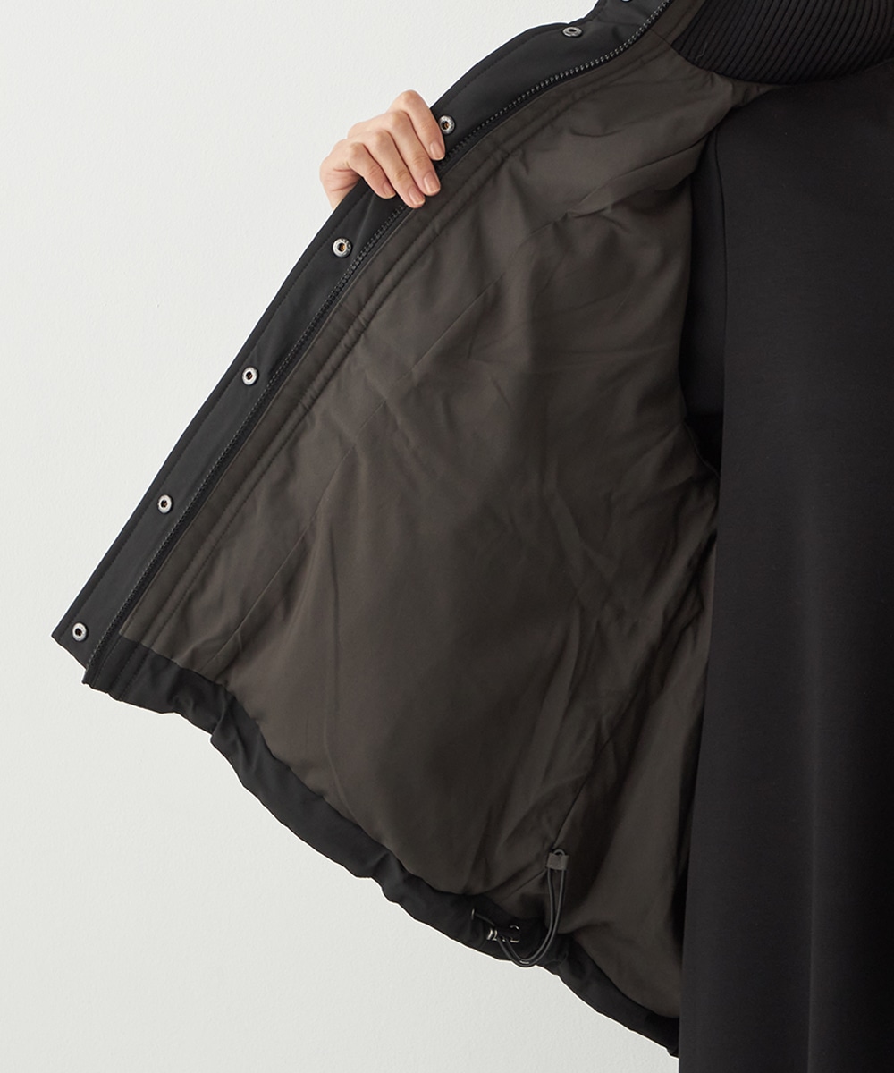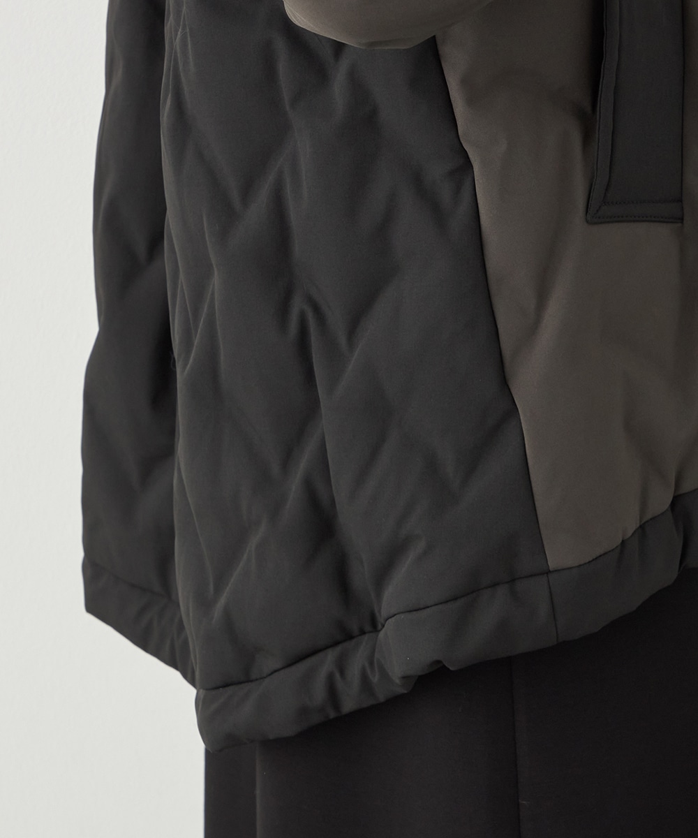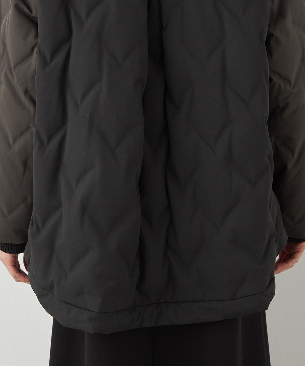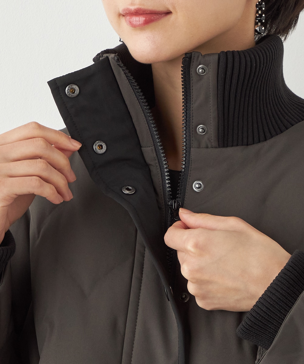 ダウン90%の高い混率で、しっかりとした暖かさのある着心地です。スタンドカラーや袖口のリブ使いなど、冷えやすい部分を外気からカバーするように工夫をしています。バックのフレアシルエットがひと味違った雰囲気のポイント。裾のコードの絞り具合でアレンジも楽しめます。