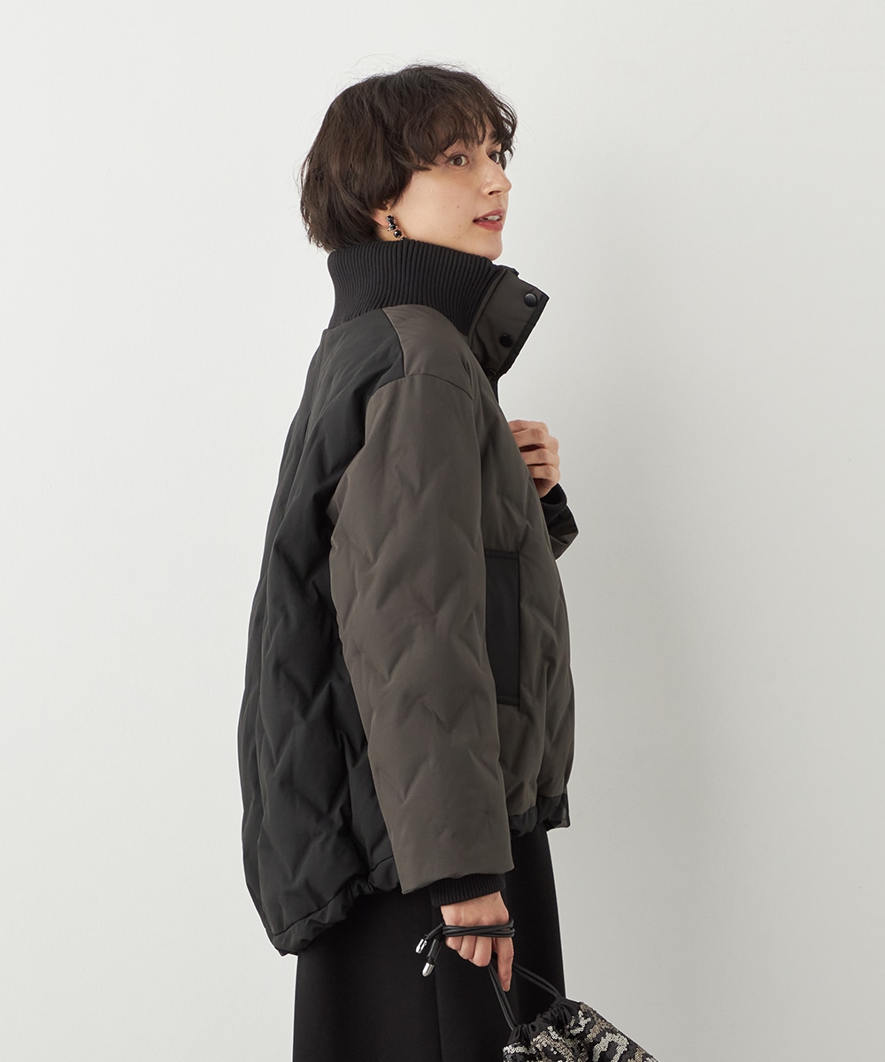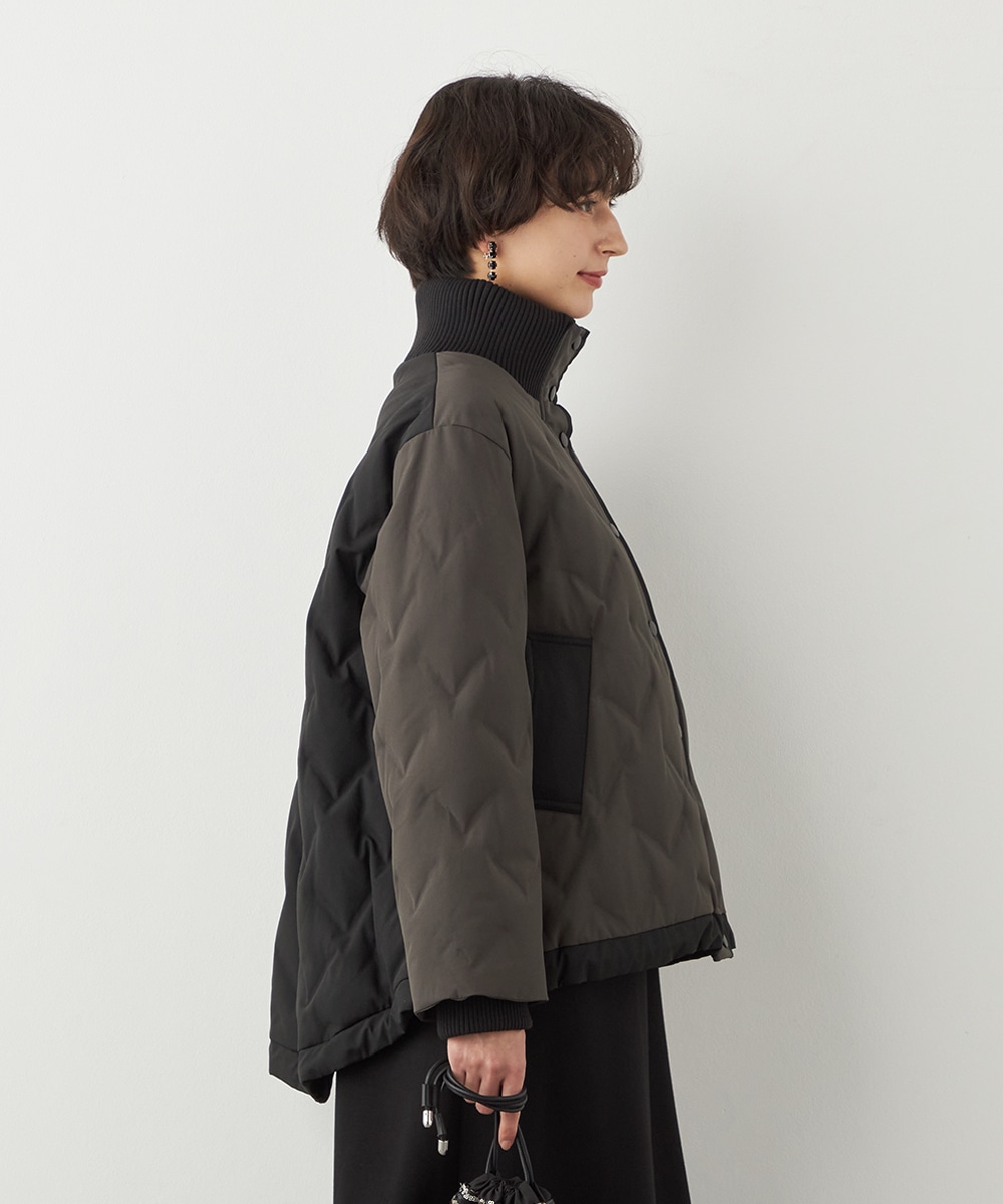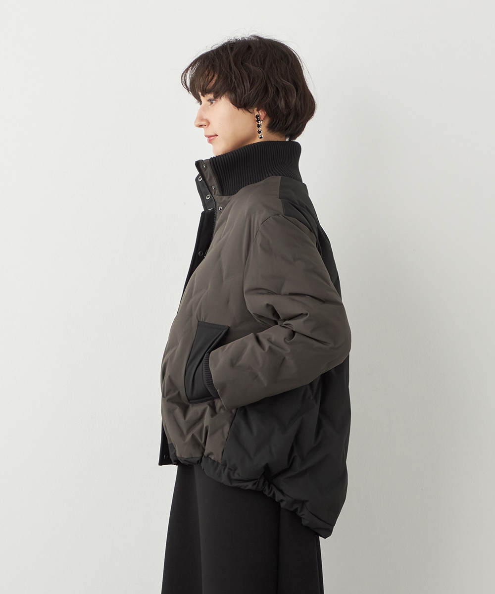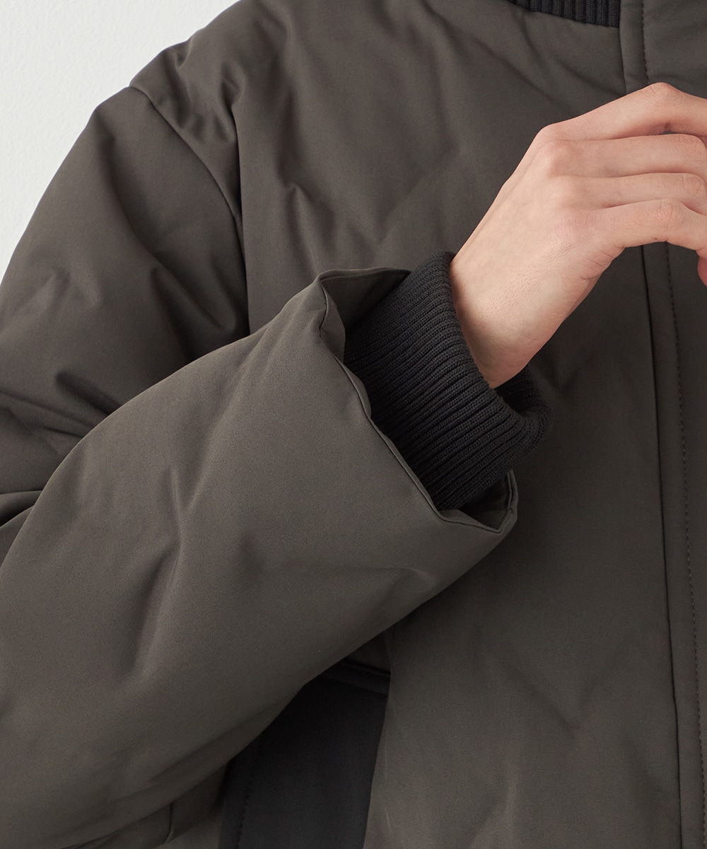 ダウン90%の高い混率で、しっかりとした暖かさのある着心地です。スタンドカラーや袖口のリブ使いなど、冷えやすい部分を外気からカバーするように工夫をしています。バックのフレアシルエットがひと味違った雰囲気のポイント。裾のコードの絞り具合でアレンジも楽しめます。