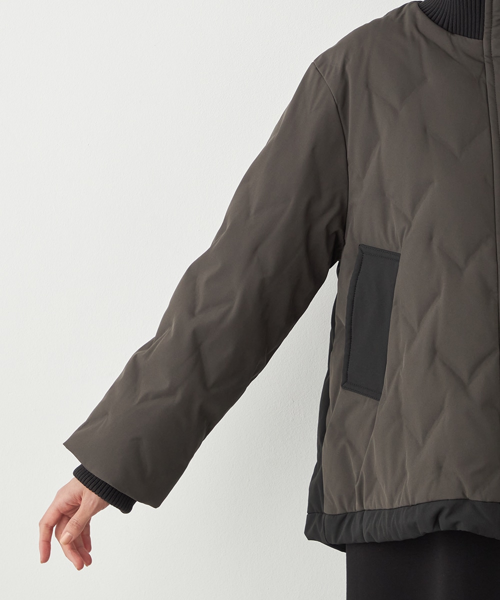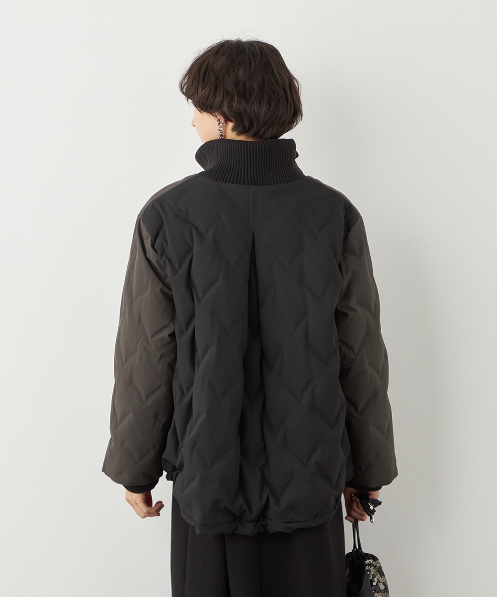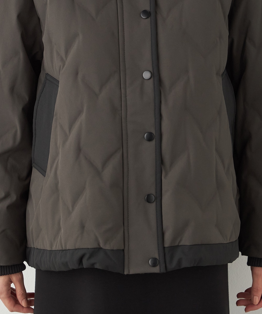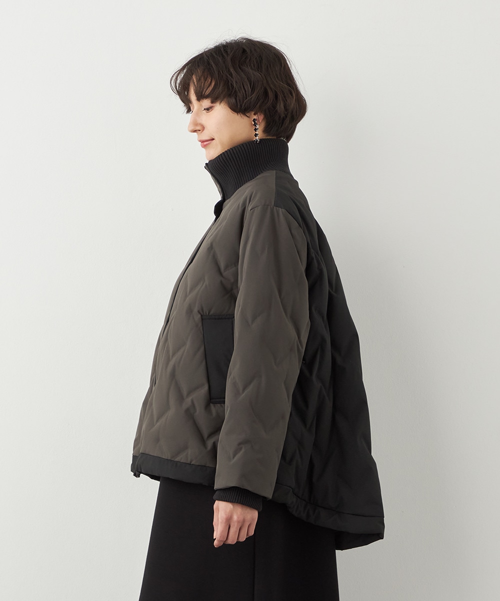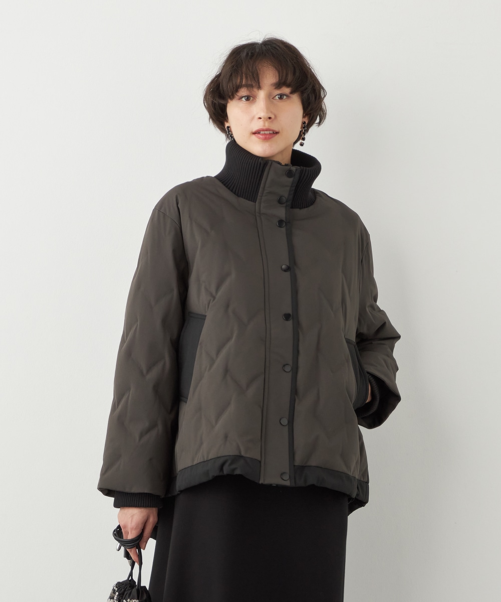 ダウン90%の高い混率で、しっかりとした暖かさのある着心地です。スタンドカラーや袖口のリブ使いなど、冷えやすい部分を外気からカバーするように工夫をしています。バックのフレアシルエットがひと味違った雰囲気のポイント。裾のコードの絞り具合でアレンジも楽しめます。
