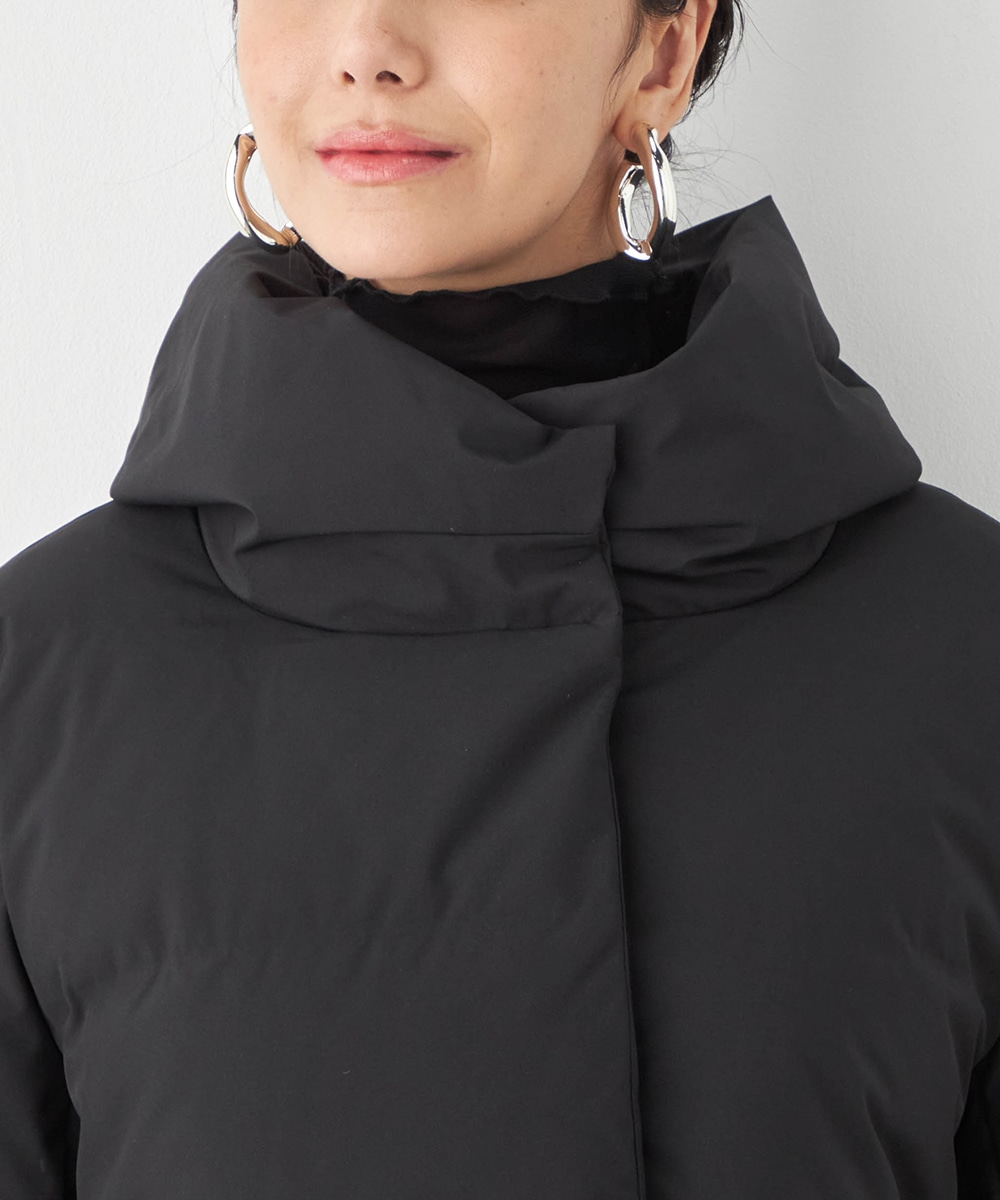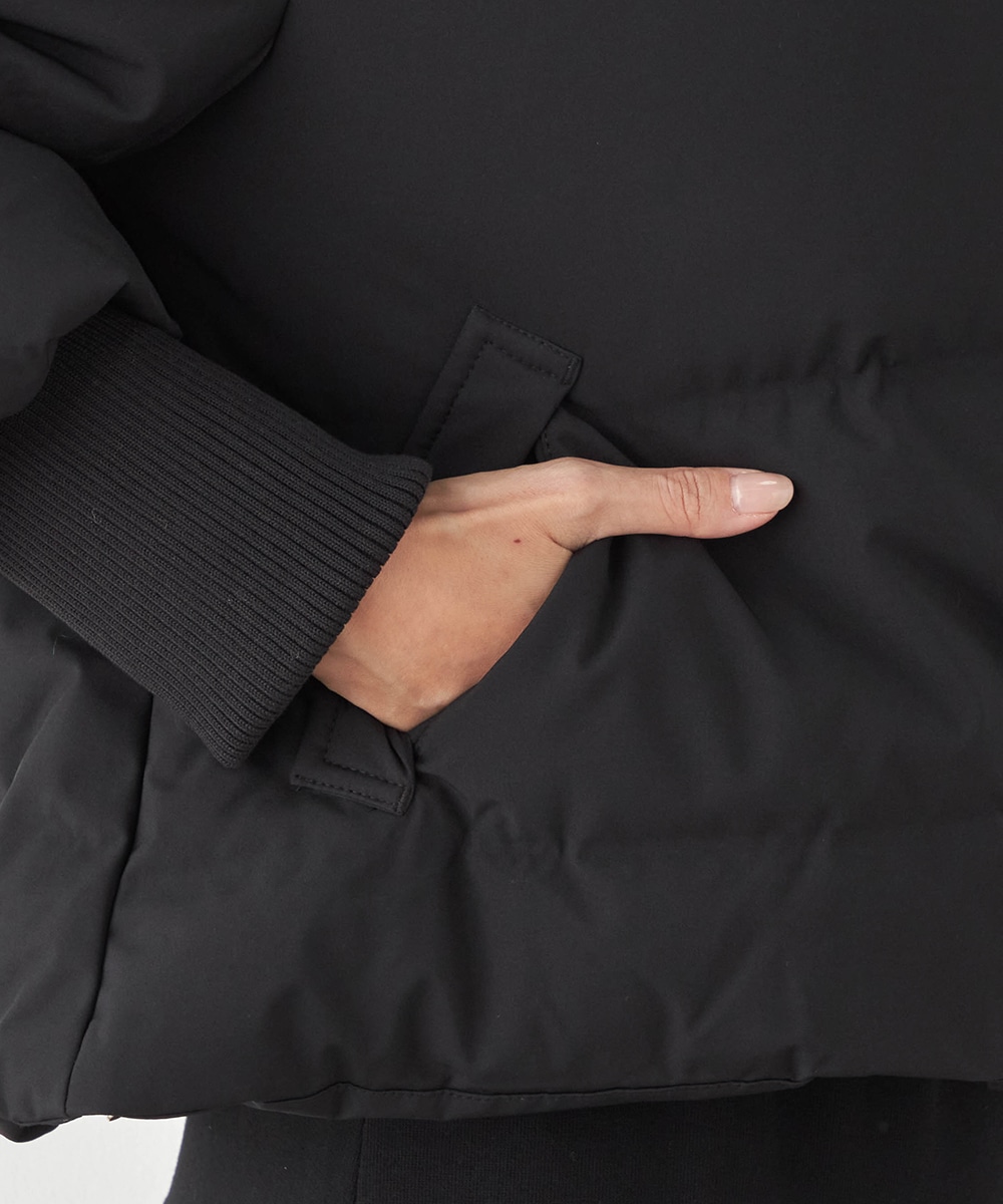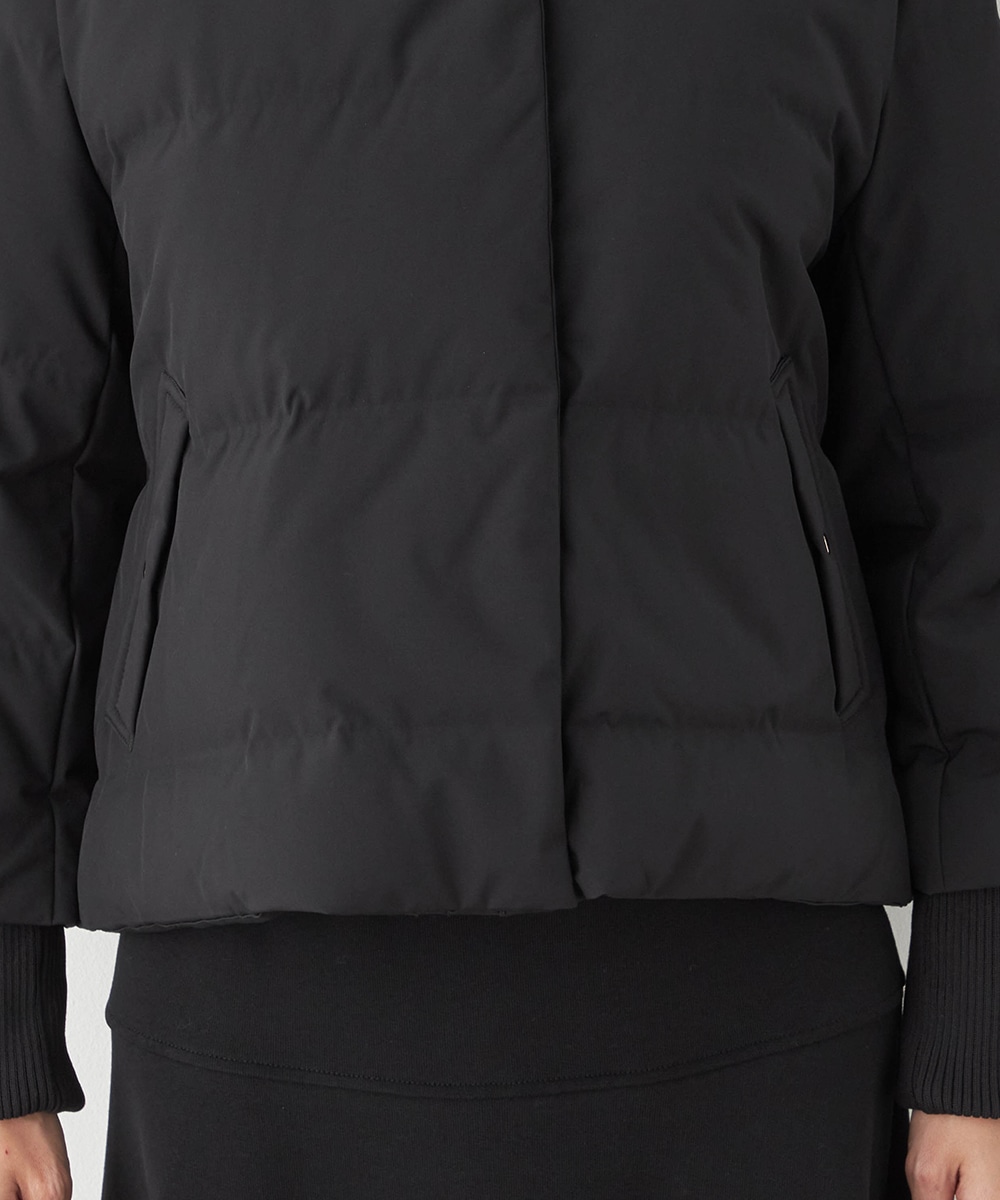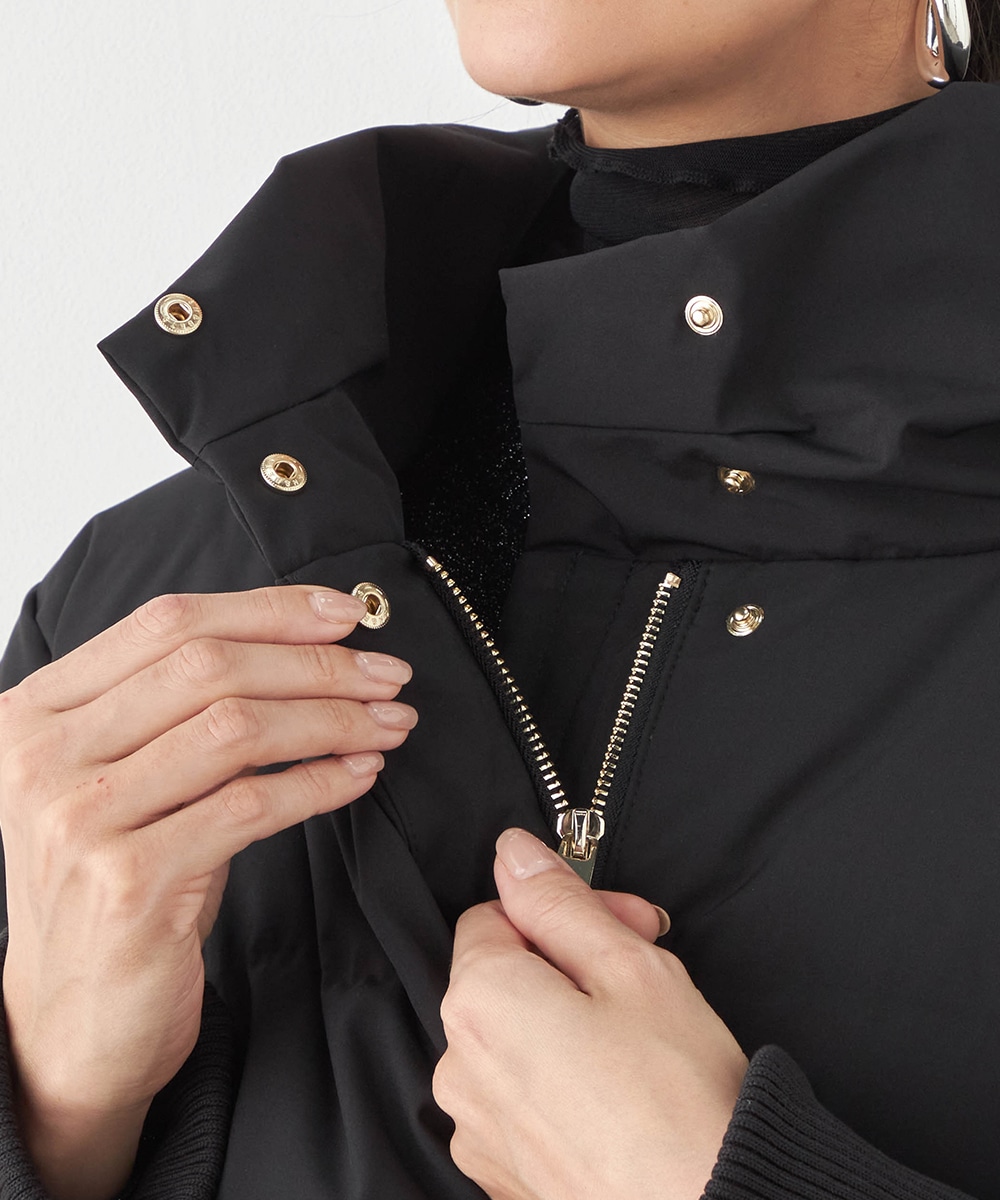 幅広いシーンで活用できるシンプルなデザインです。ポケット口のメタリックなボタンがアクセントとして効いています。襟元は高さがあり、冷えやすい首回りをしっかりとカバー。裾はコードの絞り具合でフィット感を調整できます。ダウン70%で、軽さと暖かさを両立した着心地です。