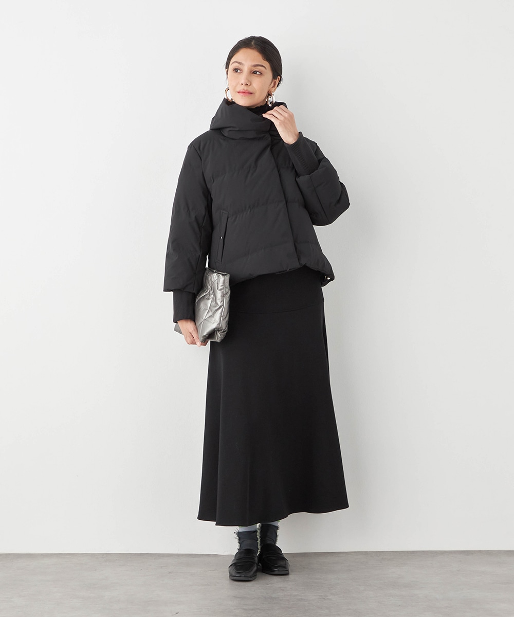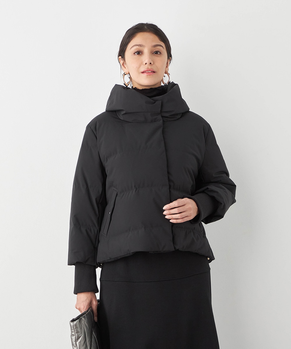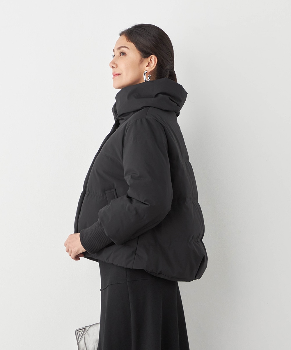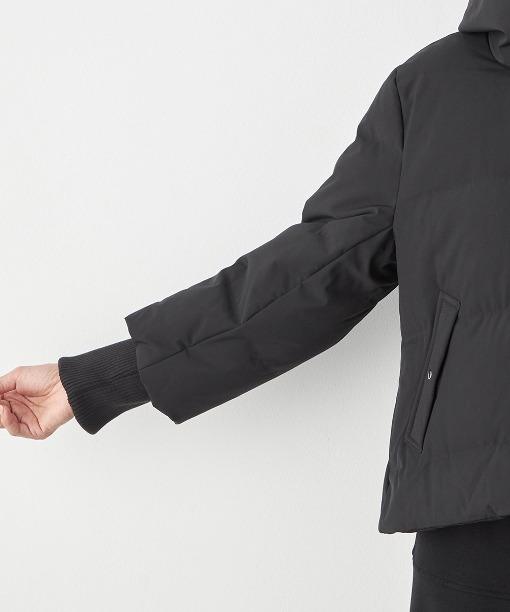幅広いシーンで活用できるシンプルなデザインです。ポケット口のメタリックなボタンがアクセントとして効いています。襟元は高さがあり、冷えやすい首回りをしっかりとカバー。裾はコードの絞り具合でフィット感を調整できます。ダウン70%で、軽さと暖かさを両立した着心地です。