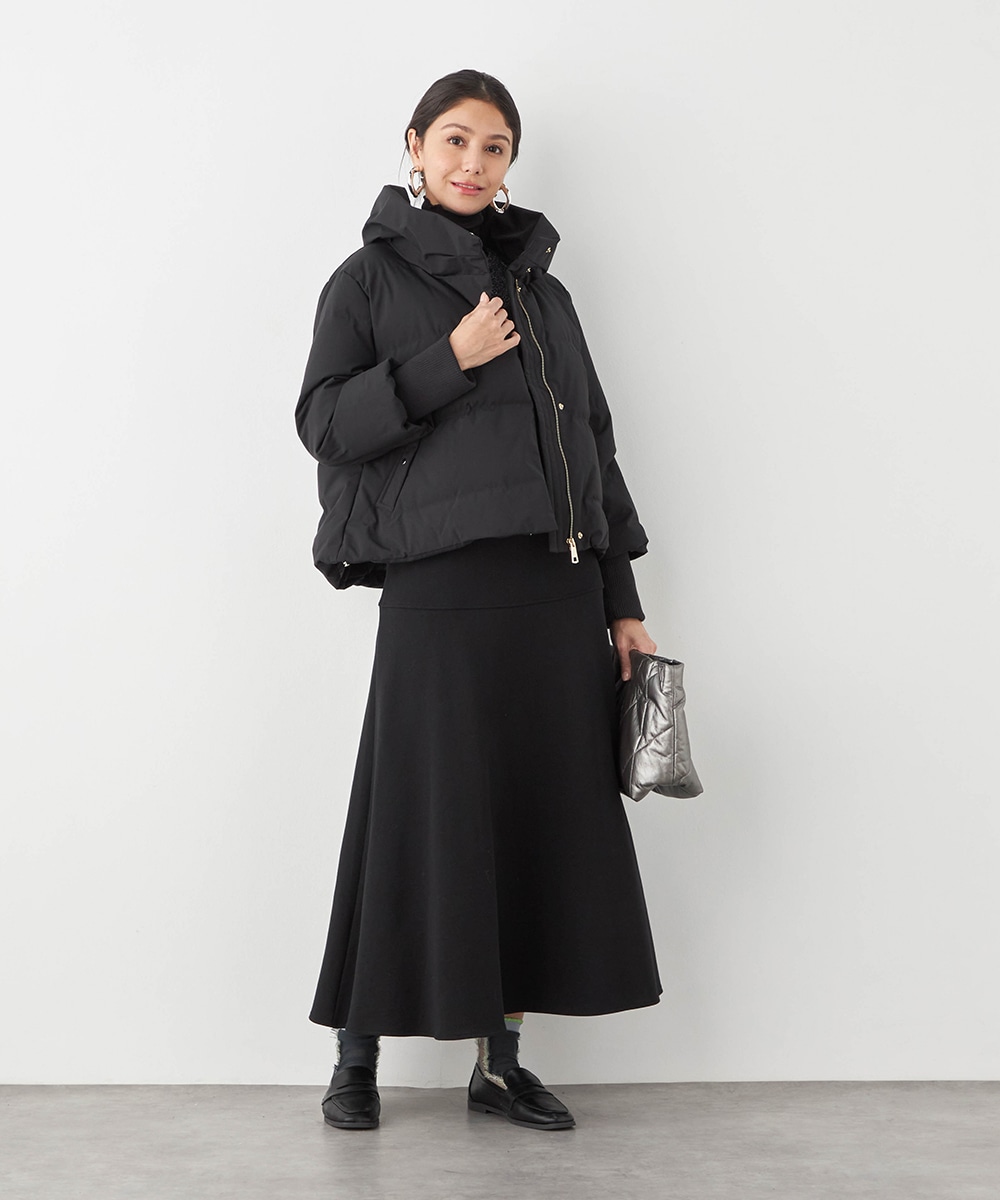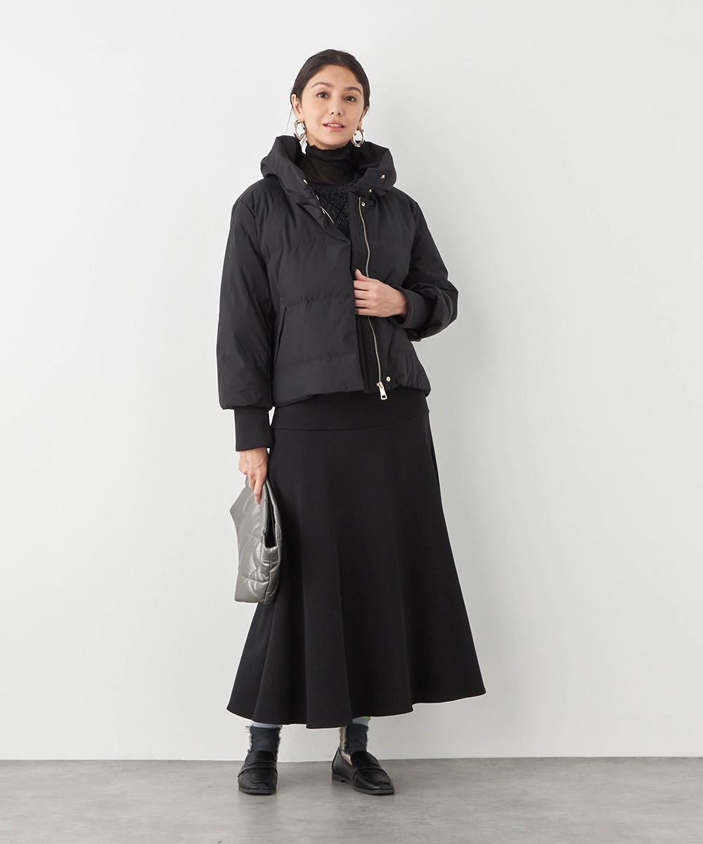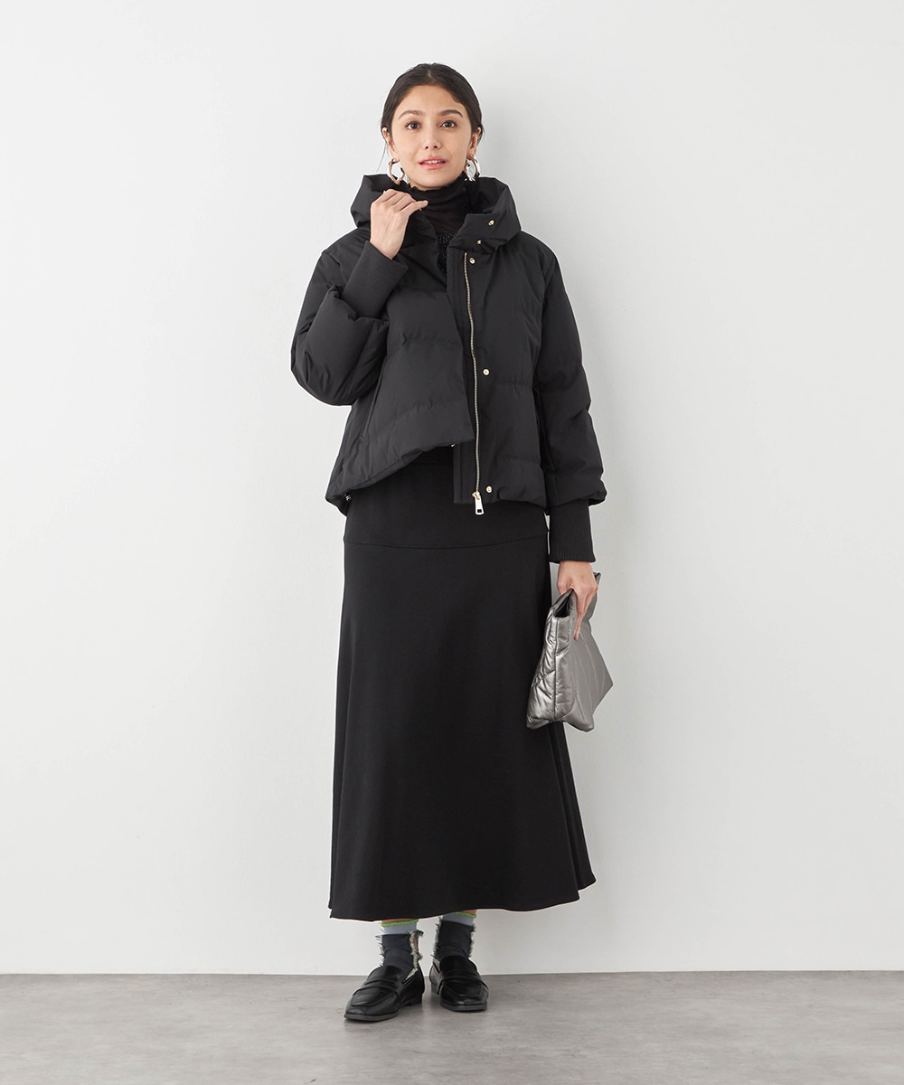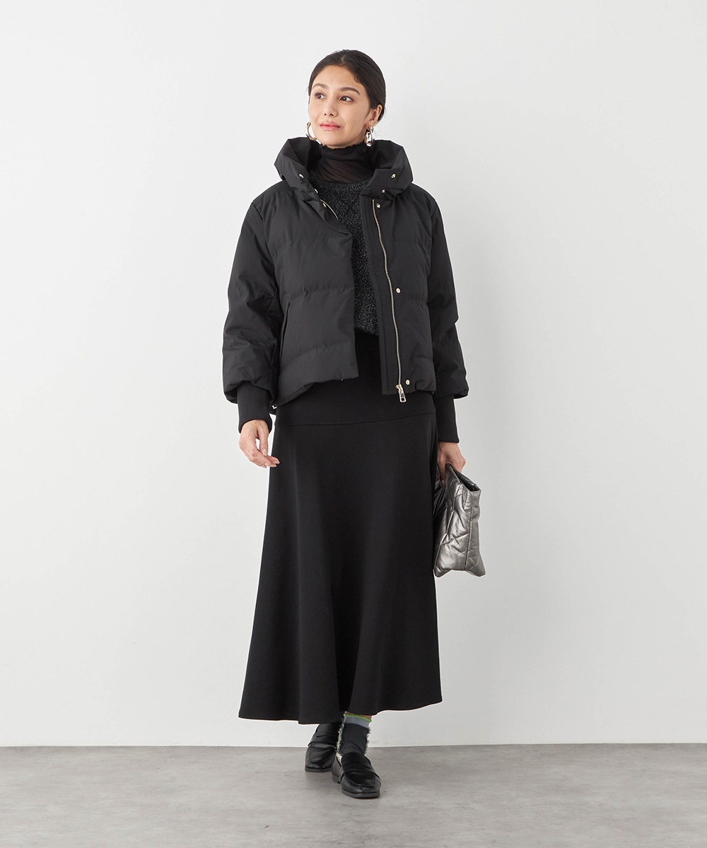 幅広いシーンで活用できるシンプルなデザインです。ポケット口のメタリックなボタンがアクセントとして効いています。襟元は高さがあり、冷えやすい首回りをしっかりとカバー。裾はコードの絞り具合でフィット感を調整できます。ダウン70%で、軽さと暖かさを両立した着心地です。
