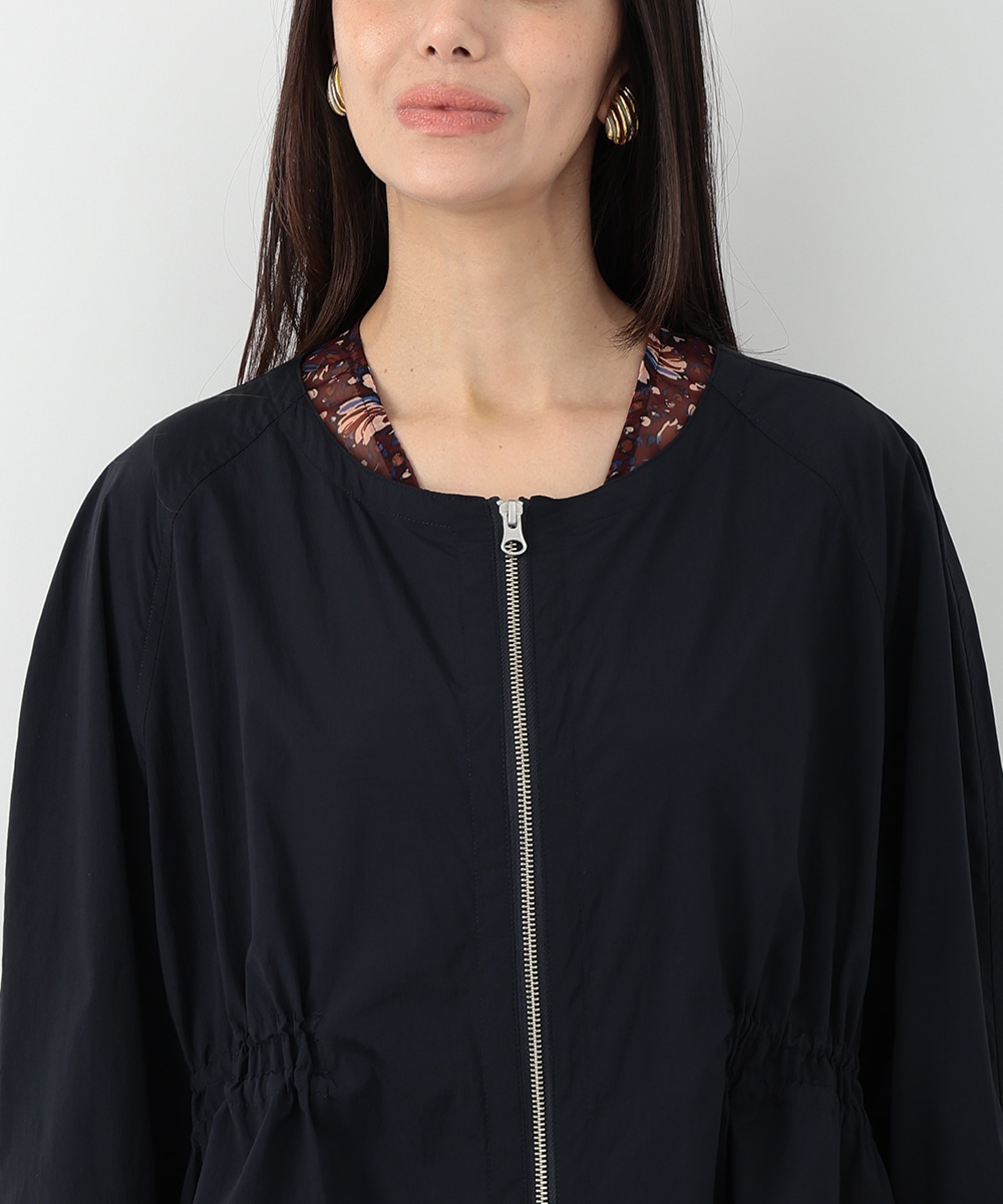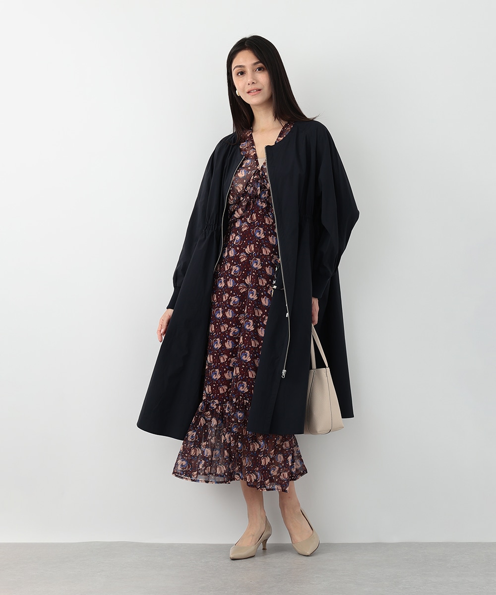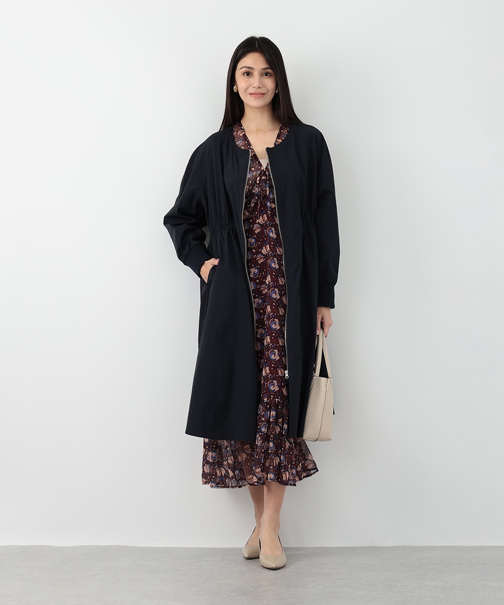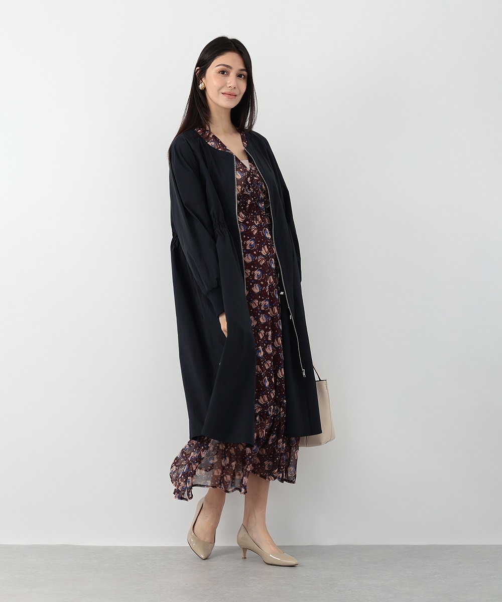 ギャザーをたっぷり施した、女性らしいシルエットのノーカラーZIPコート。落ち着いたカラーが大人の装いに馴染み、さっと羽織るだけで上品な印象に仕上がります。まだ寒い時期はコートのインとしても着用でき、季節の変わり目まで長く活躍。ワンピースとのレイヤードもおすすめです。