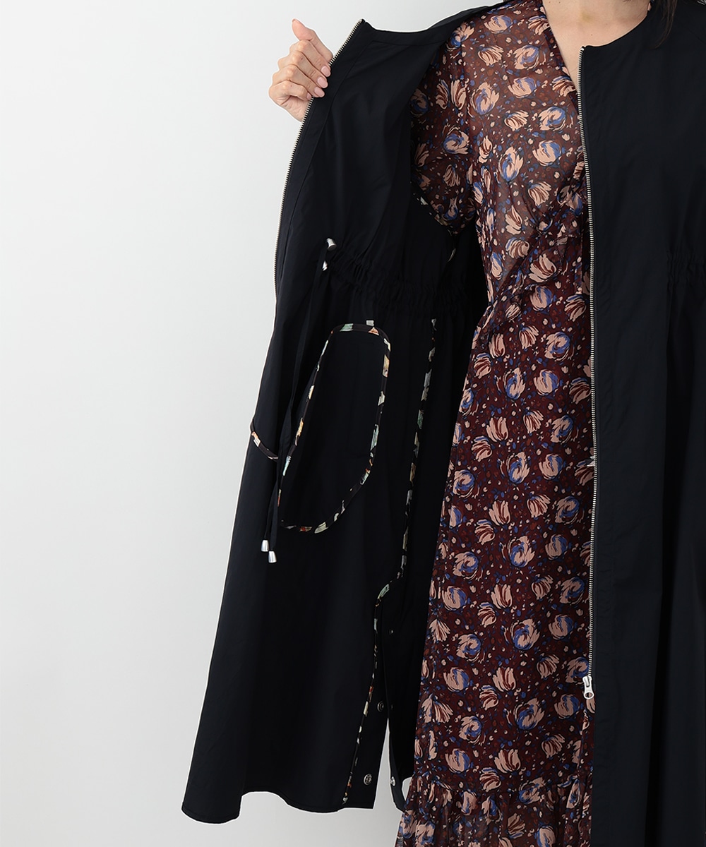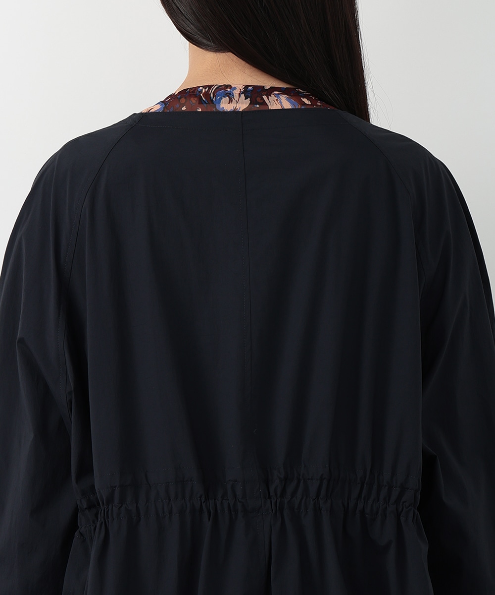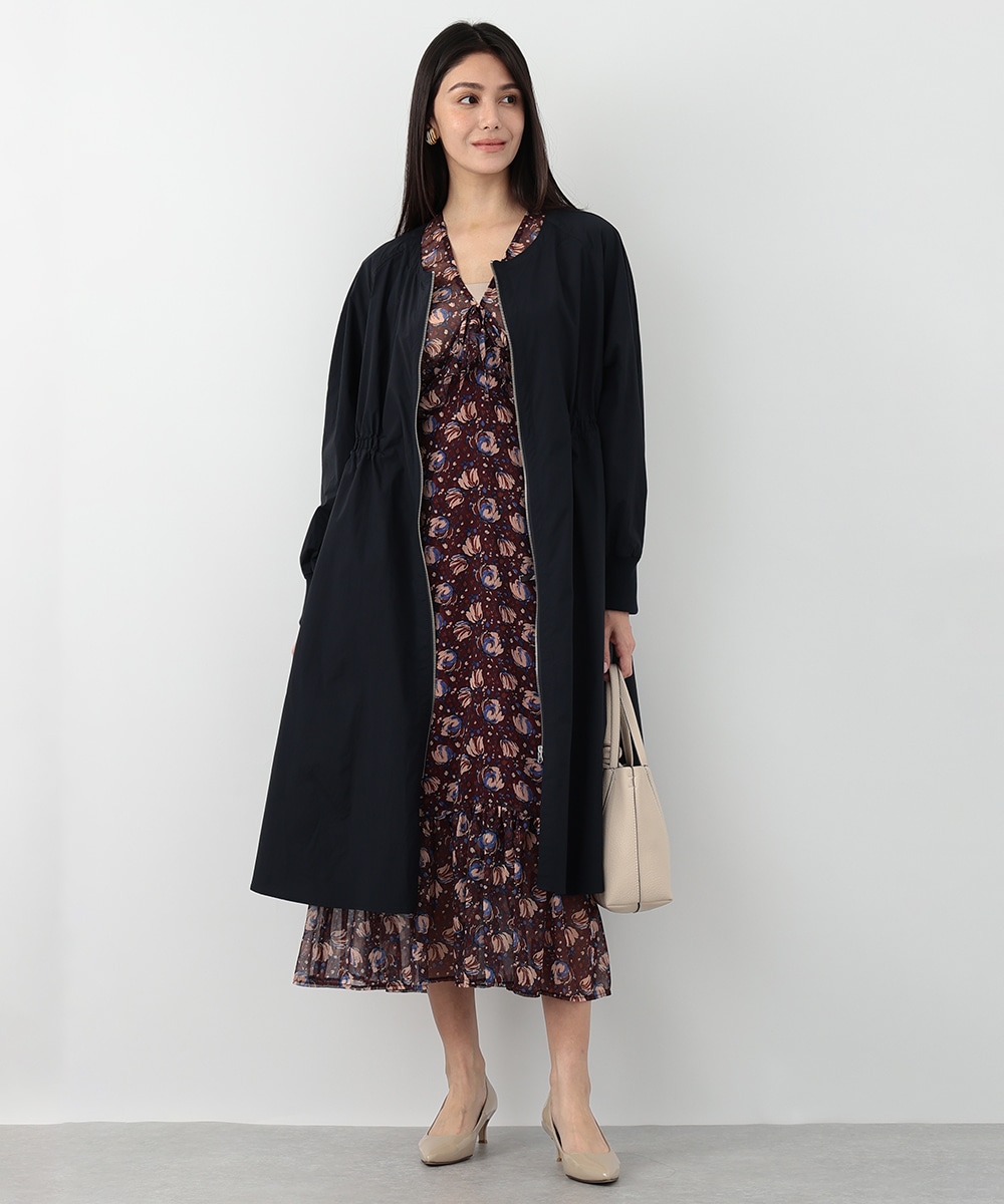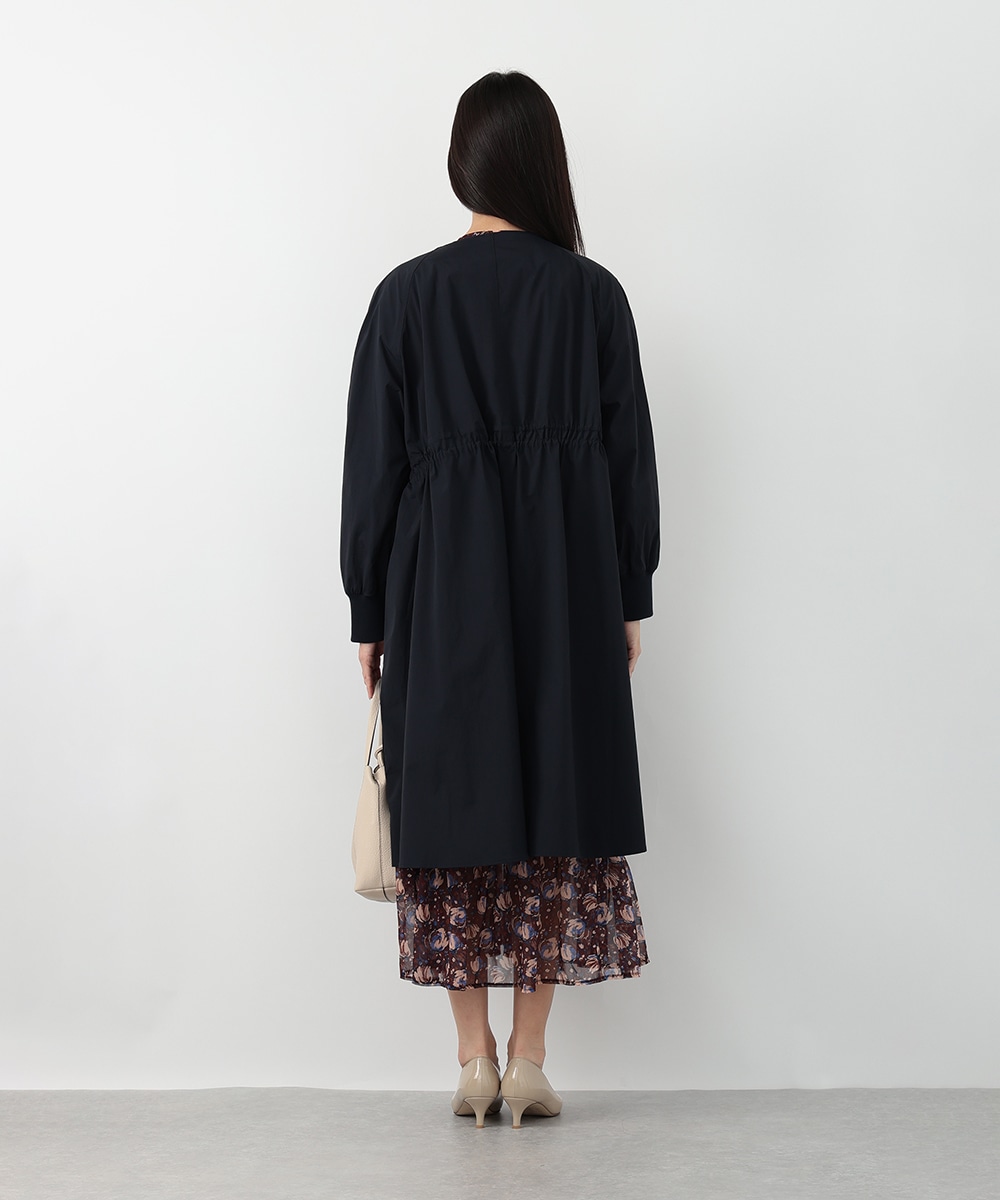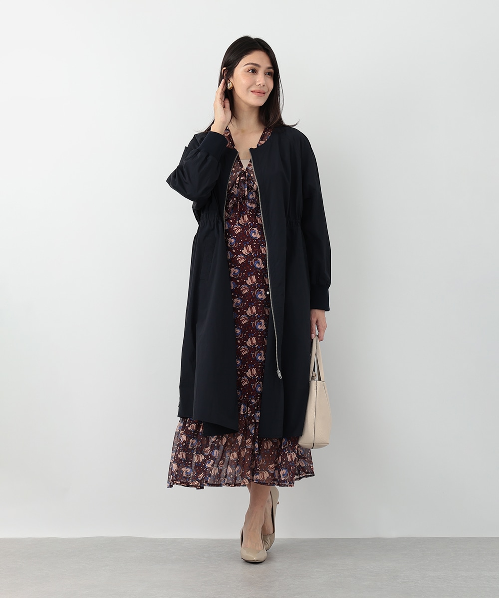 ギャザーをたっぷり施した、女性らしいシルエットのノーカラーZIPコート。落ち着いたカラーが大人の装いに馴染み、さっと羽織るだけで上品な印象に仕上がります。まだ寒い時期はコートのインとしても着用でき、季節の変わり目まで長く活躍。ワンピースとのレイヤードもおすすめです。