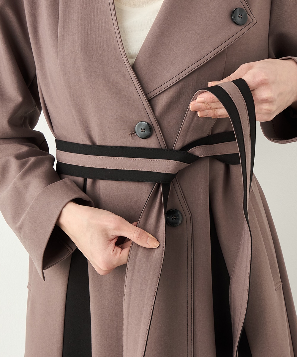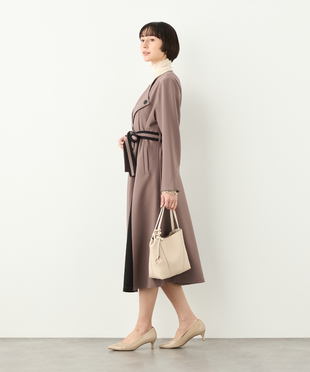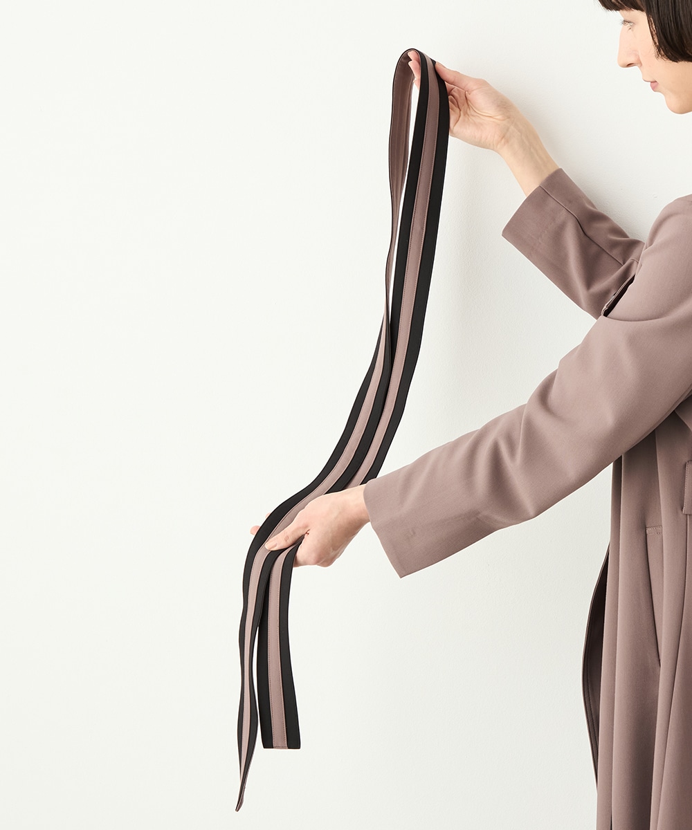 裾に向かってほどよいフレア感を見せる、フェミニンで美しいシルエットです。しなやかな風合いの生地を使用しており、揺れ感やドレープもきれいに現れます。大人っぽくシックに着こなせる長めの着丈を採用。リボンベルトが付属して、ウエストマークのアレンジも楽しめます。