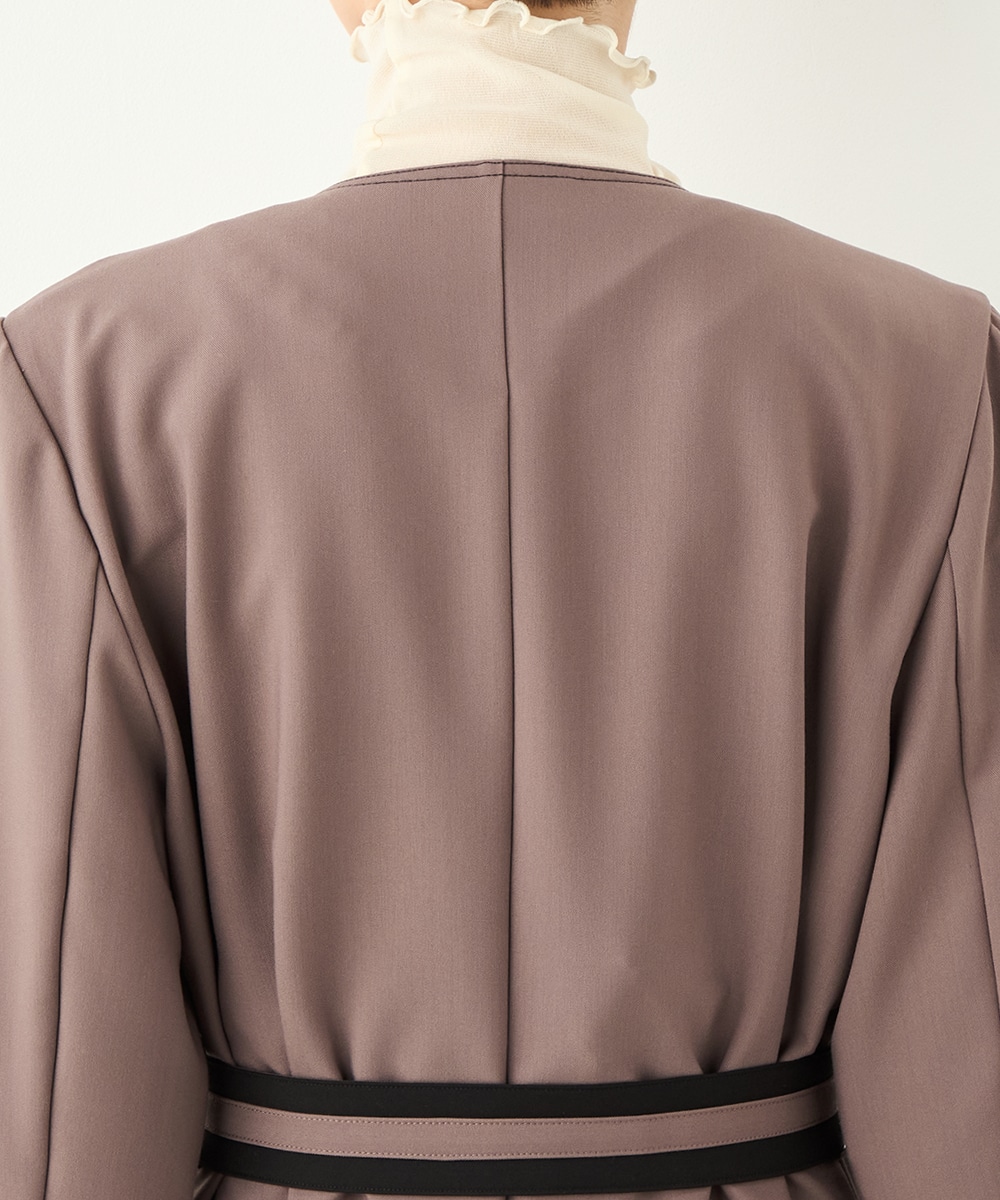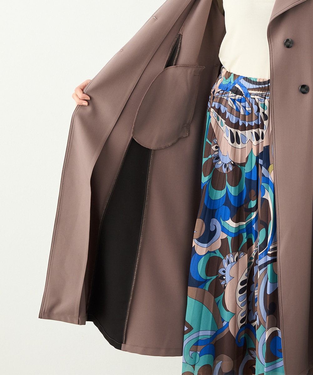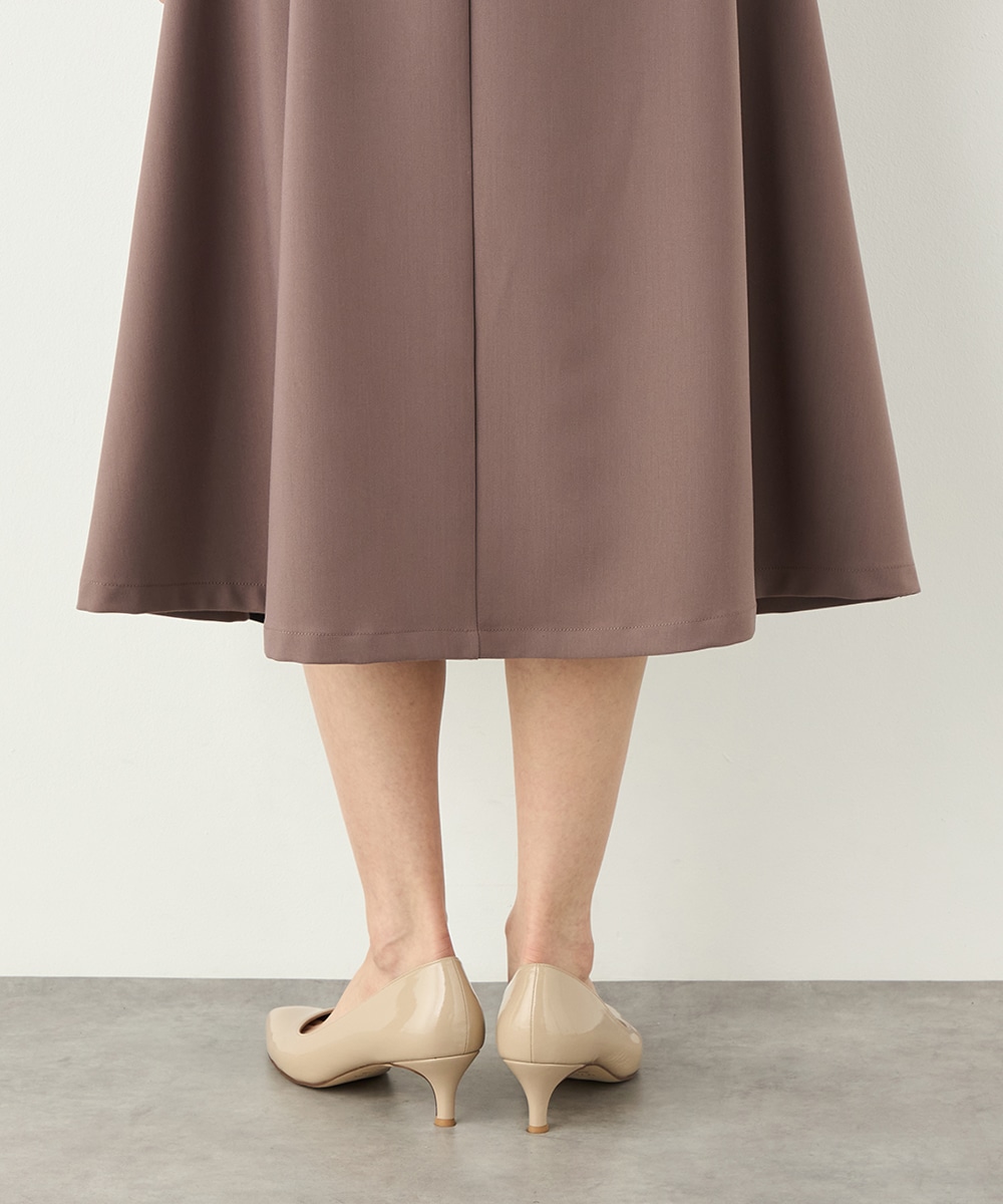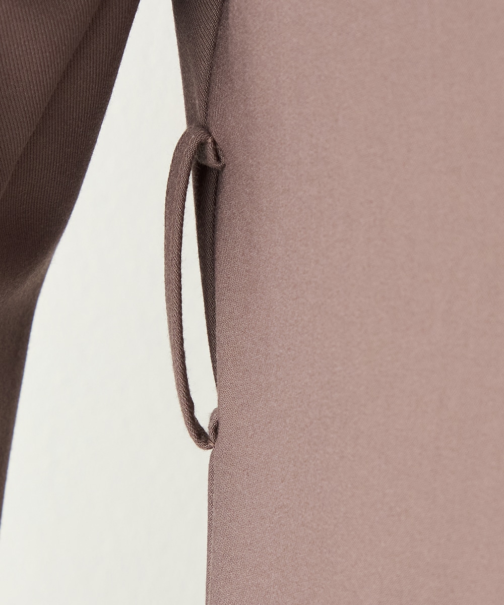 裾に向かってほどよいフレア感を見せる、フェミニンで美しいシルエットです。しなやかな風合いの生地を使用しており、揺れ感やドレープもきれいに現れます。大人っぽくシックに着こなせる長めの着丈を採用。リボンベルトが付属して、ウエストマークのアレンジも楽しめます。