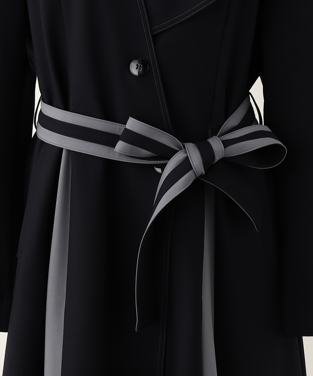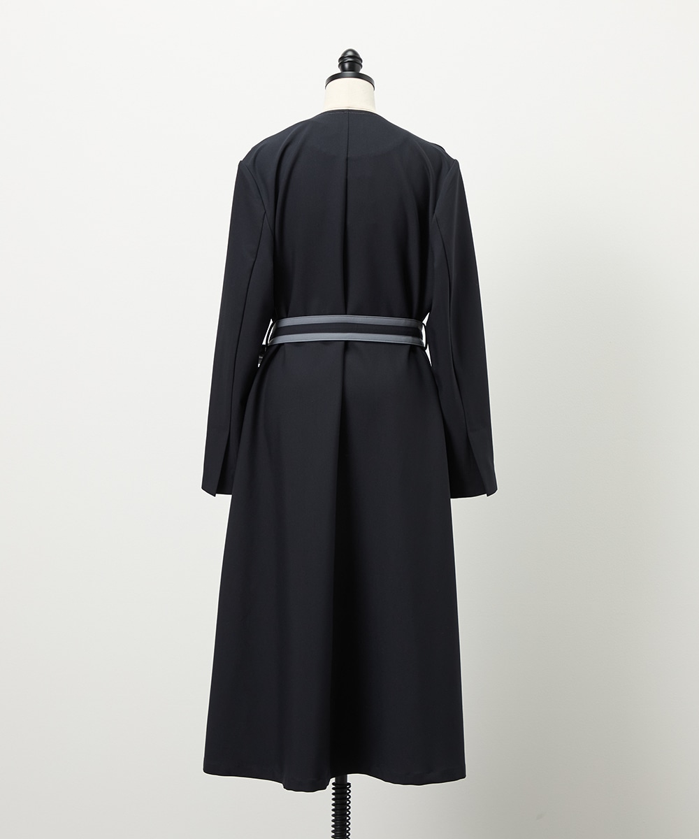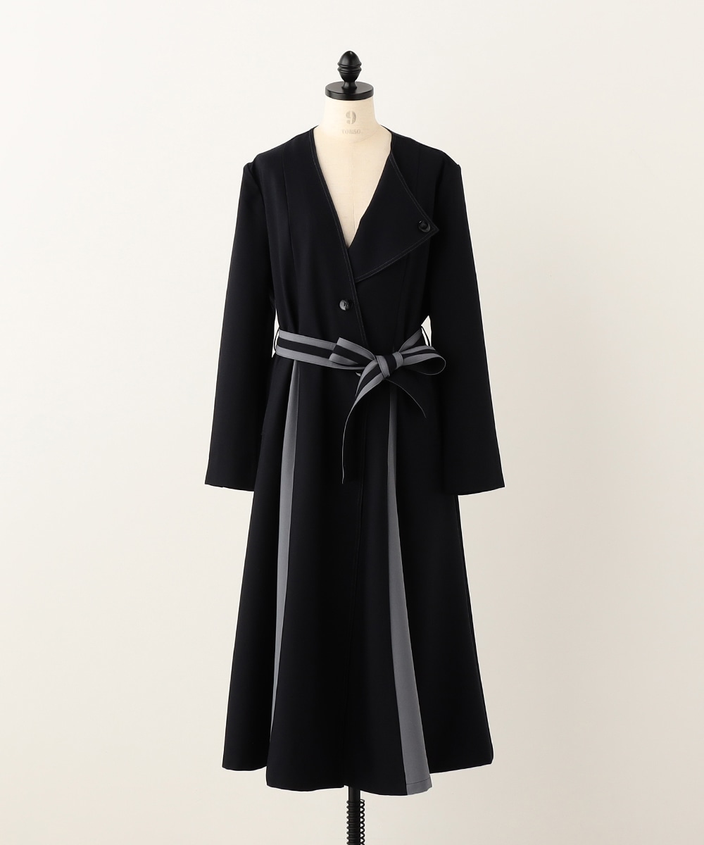 裾に向かってほどよいフレア感を見せる、フェミニンで美しいシルエットです。しなやかな風合いの生地を使用しており、揺れ感やドレープもきれいに現れます。大人っぽくシックに着こなせる長めの着丈を採用。リボンベルトが付属して、ウエストマークのアレンジも楽しめます。