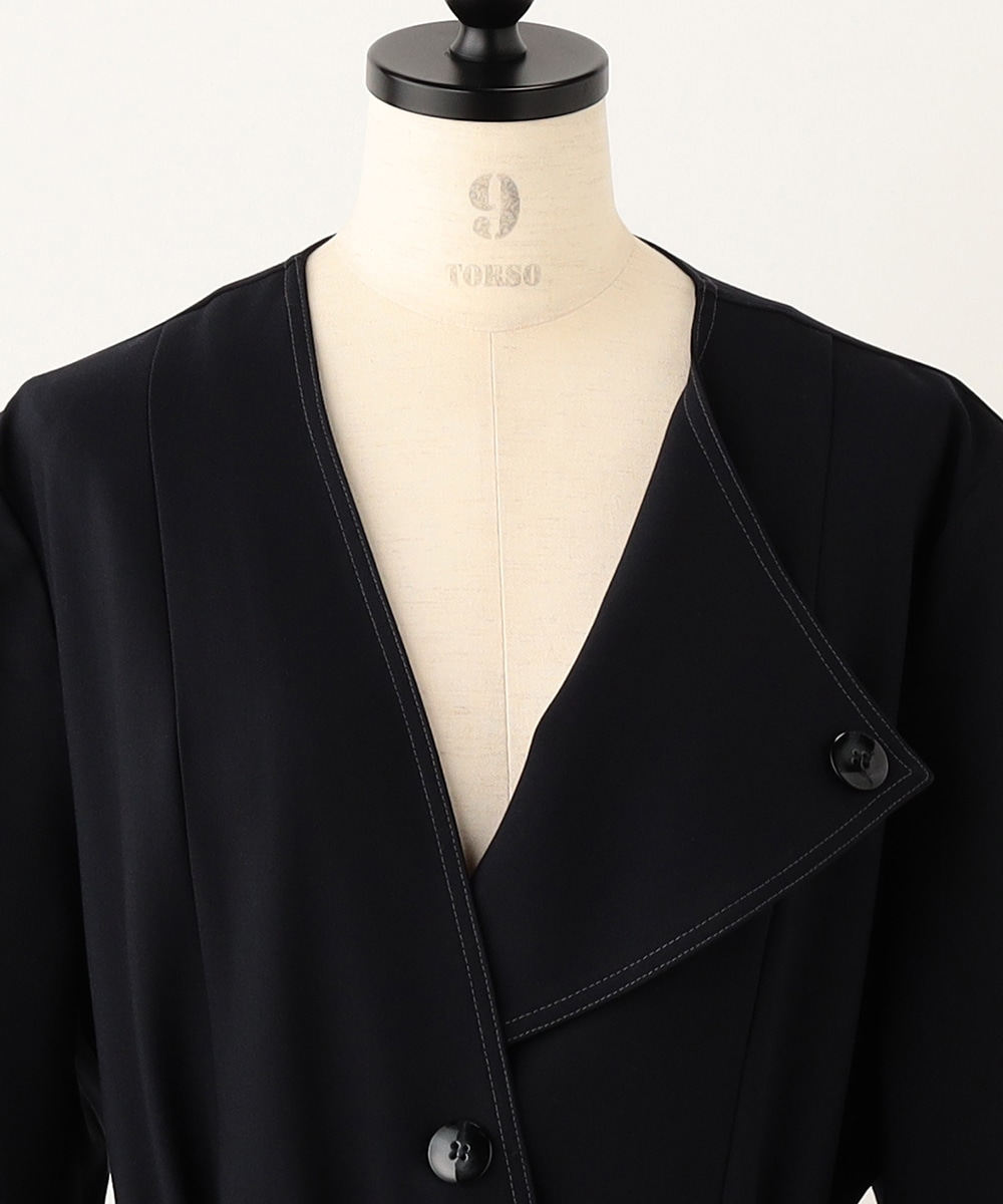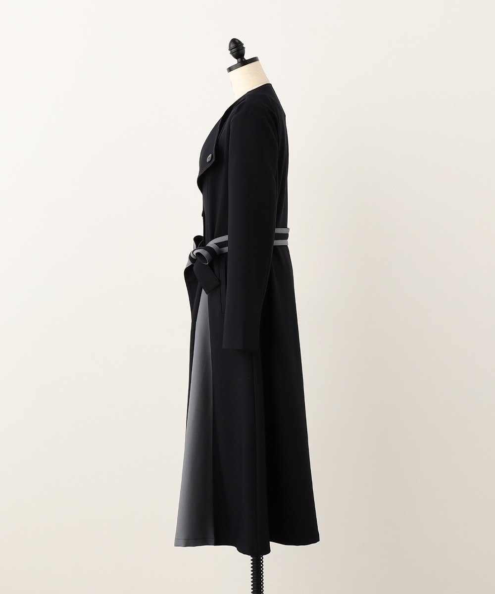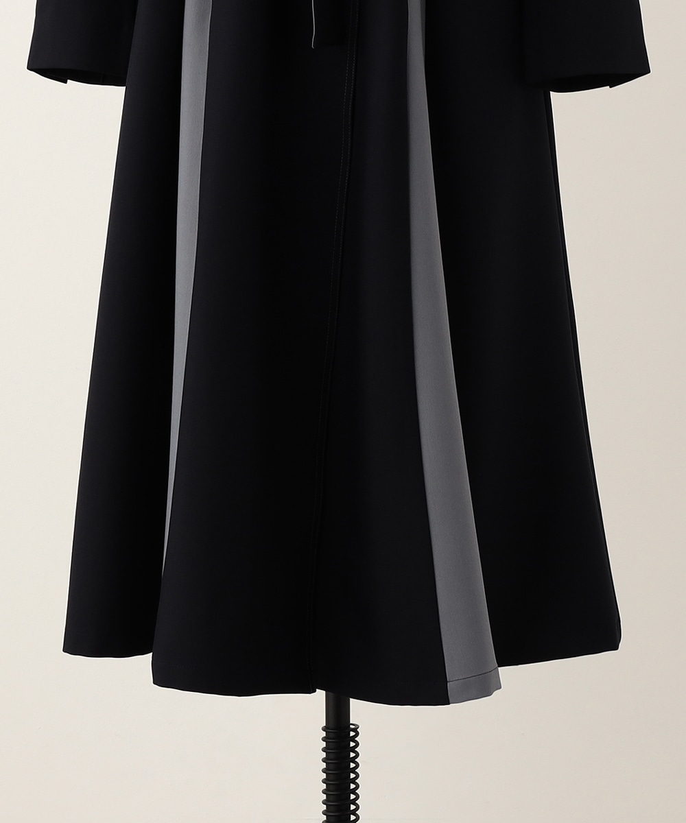 裾に向かってほどよいフレア感を見せる、フェミニンで美しいシルエットです。しなやかな風合いの生地を使用しており、揺れ感やドレープもきれいに現れます。大人っぽくシックに着こなせる長めの着丈を採用。リボンベルトが付属して、ウエストマークのアレンジも楽しめます。